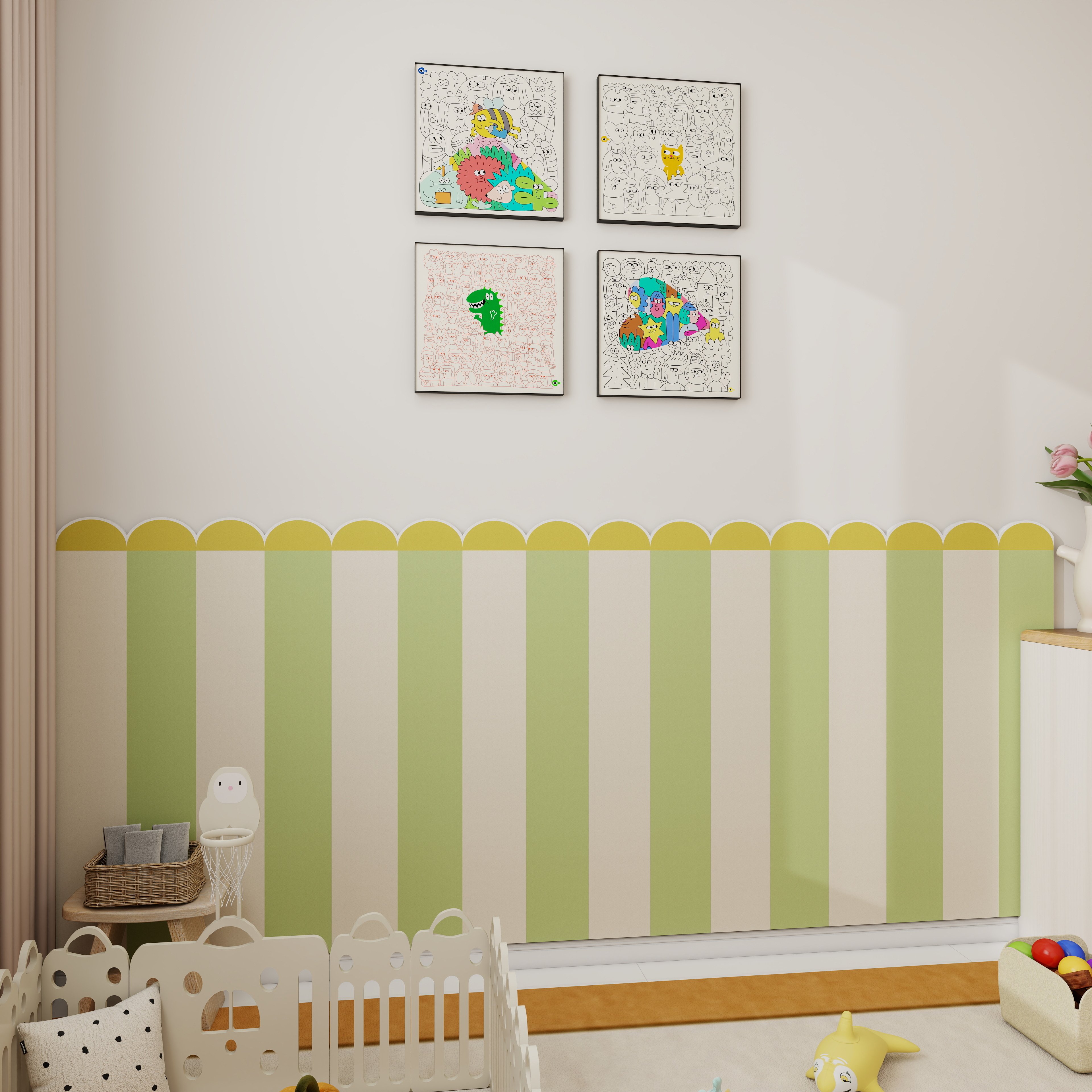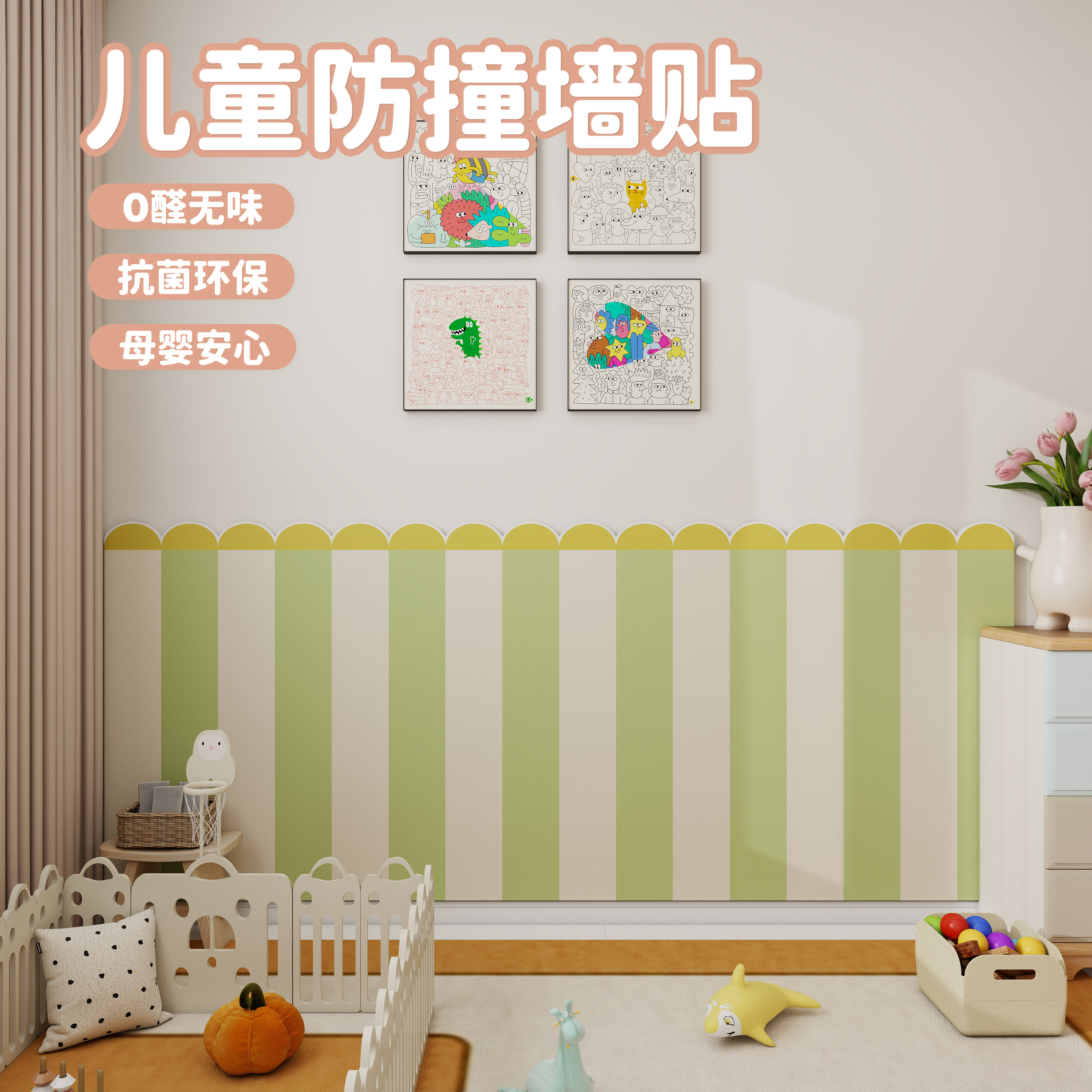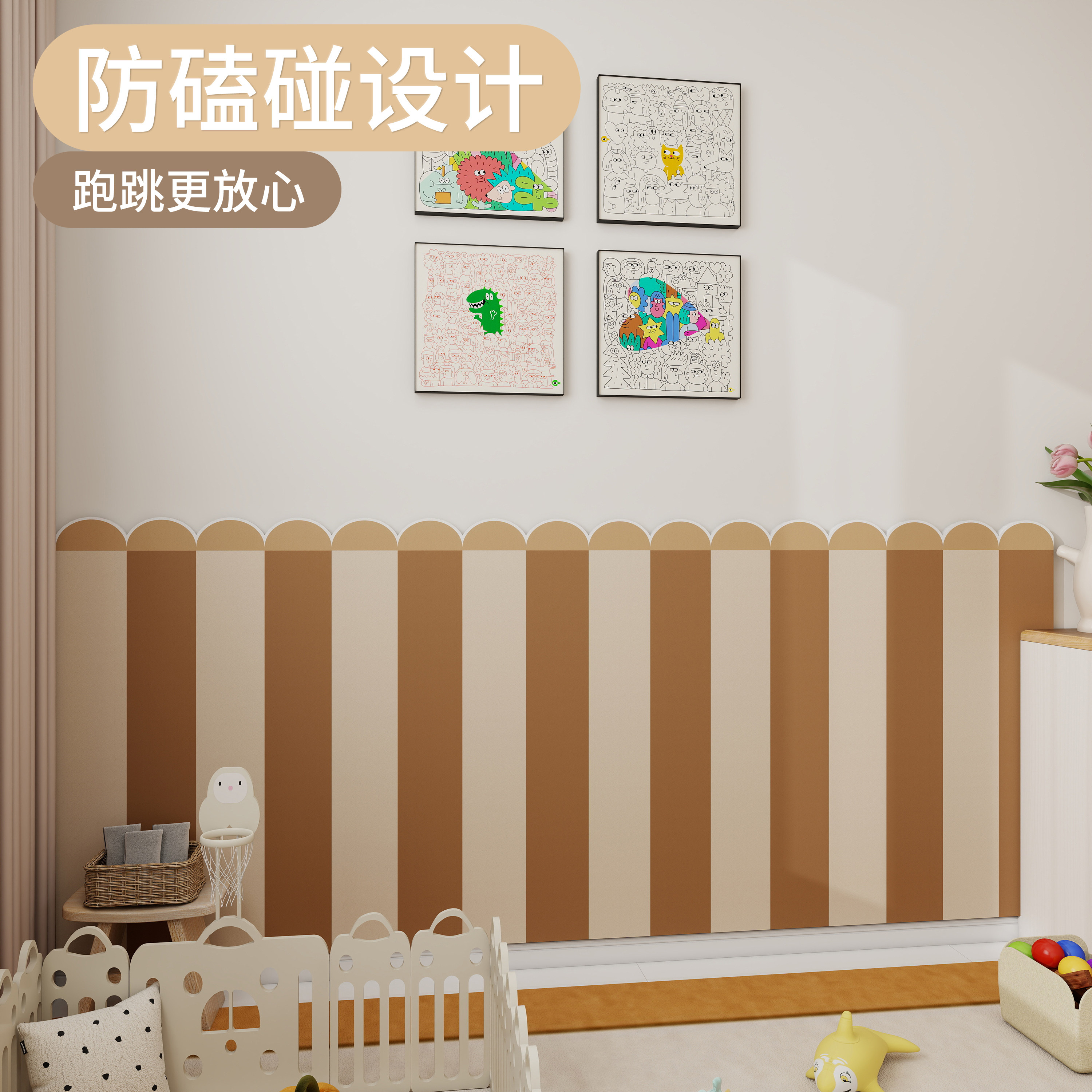 儿童房墙面装饰墙围ins风创意毛毡墙贴3d立体防撞护墙板自粘墙围