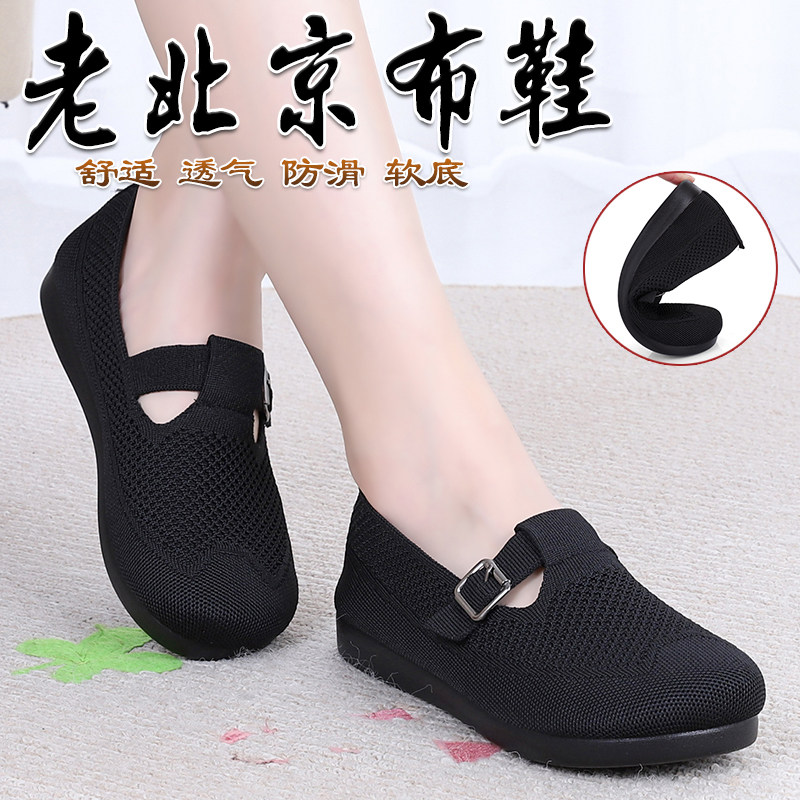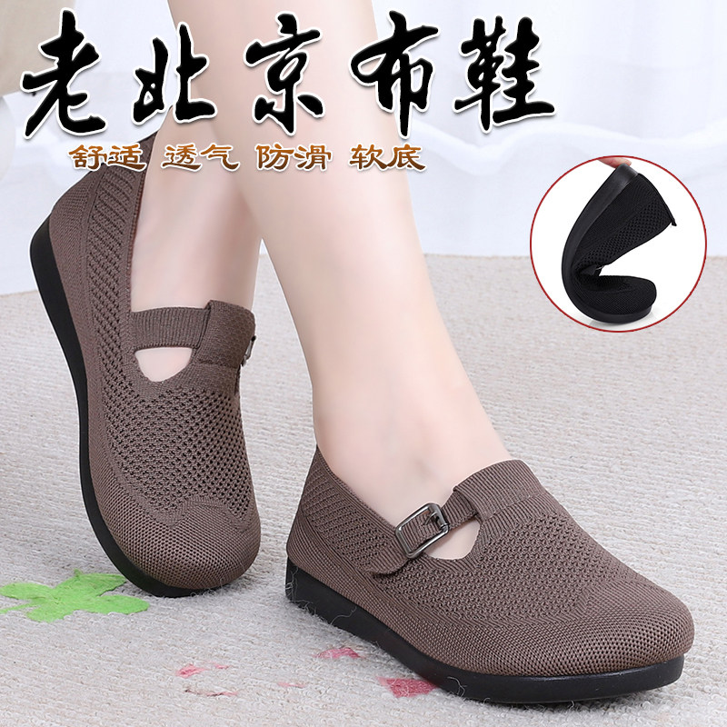老北京布鞋女鞋春秋单鞋一脚蹬防滑时尚浅口妈妈鞋平底软底奶奶鞋