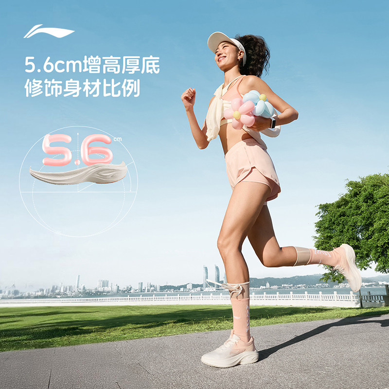 李宁跑步鞋凌波女款秋冬莫兰迪色网面轻便厚底增高减震跳绳跑步鞋