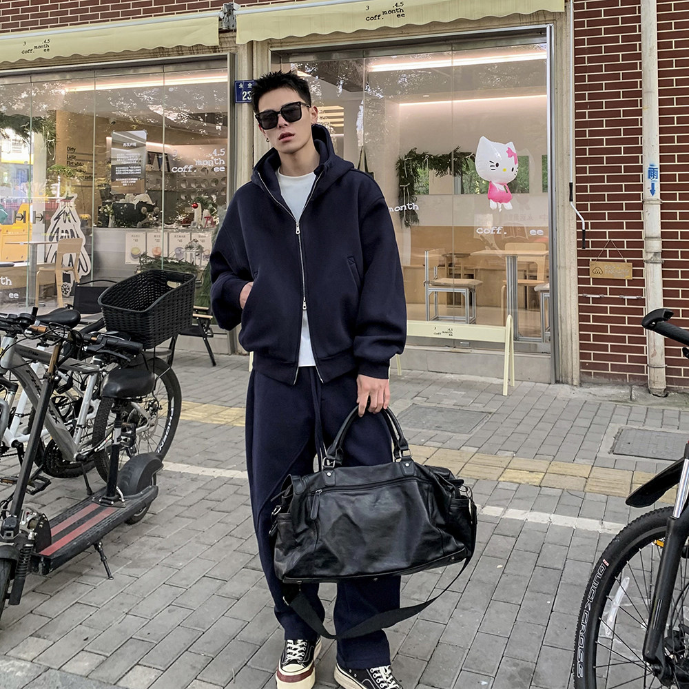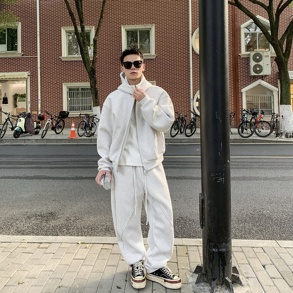 美式简约重磅连帽卫衣男套装春秋高级感慵懒运动休闲裤衣服两件套