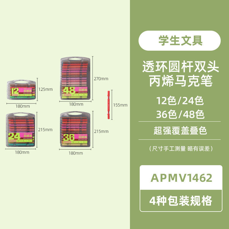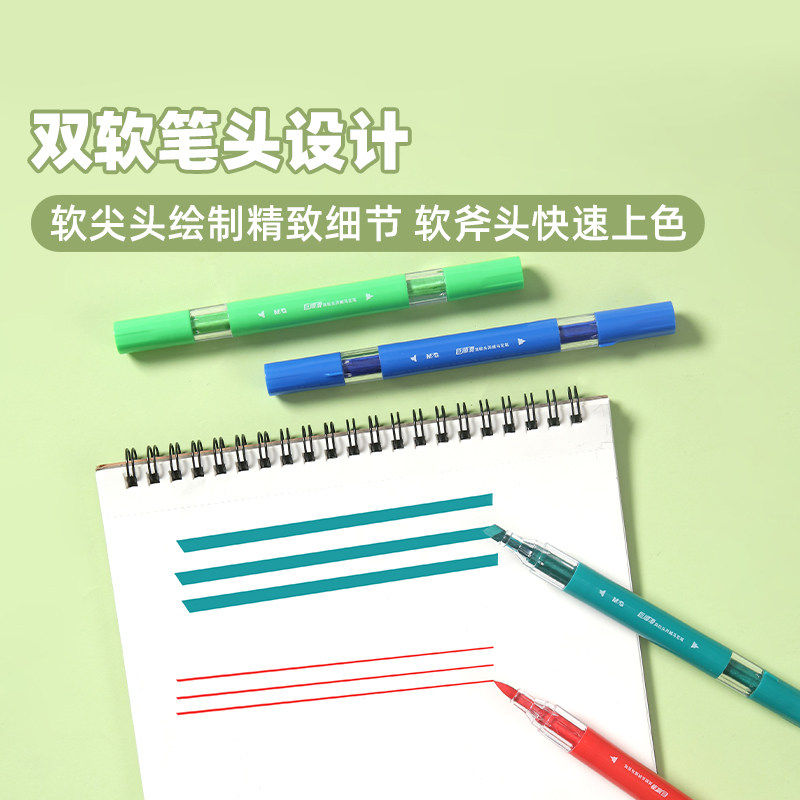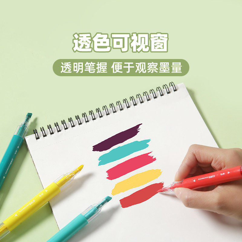 晨光透环圆杆双头巨顺滑12色48色双头丙烯马克笔小学生初学者绘画