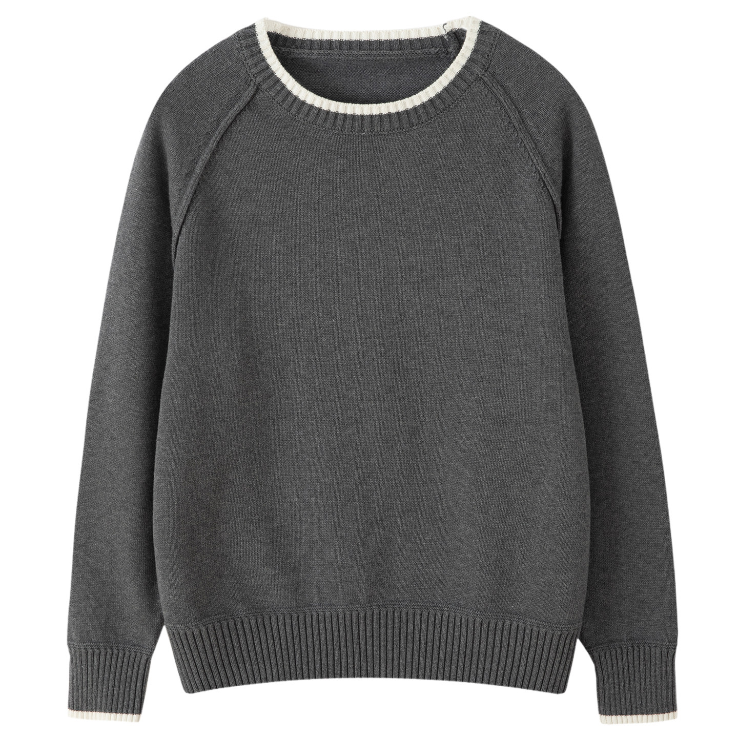 拼色加厚100%纯棉圆领毛衣女秋冬内搭宽松洋气可外穿针织打底衫女