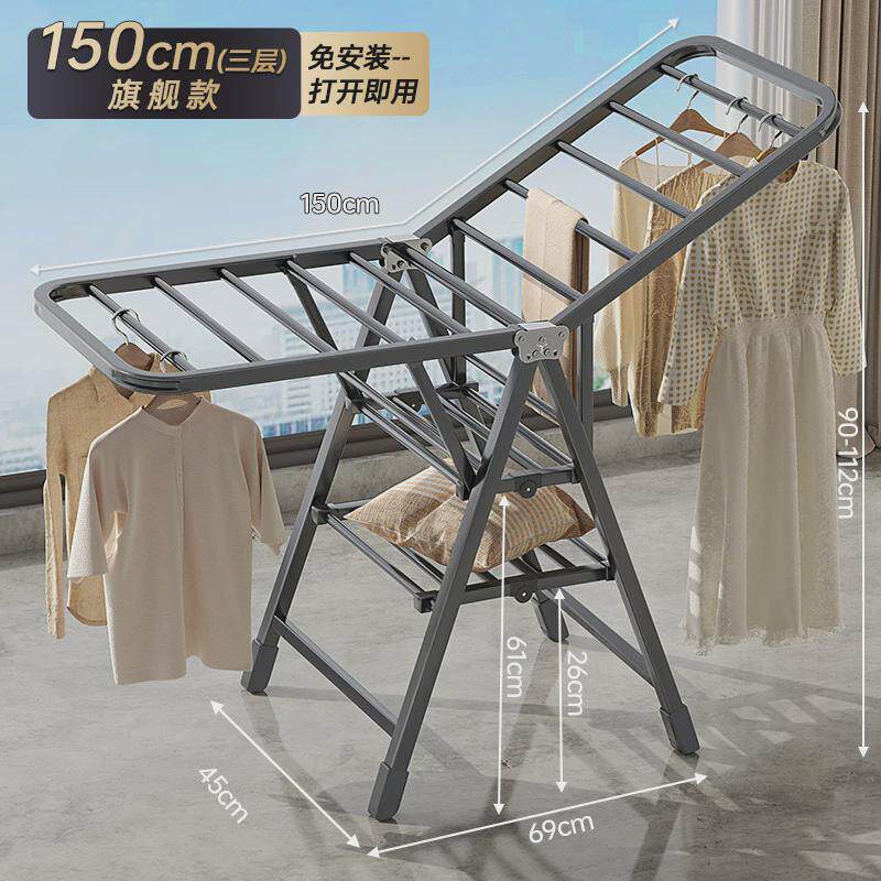 阳台家用落地式挂衣架室内防风凉衣杆简易晒被子多功能折叠晾衣架