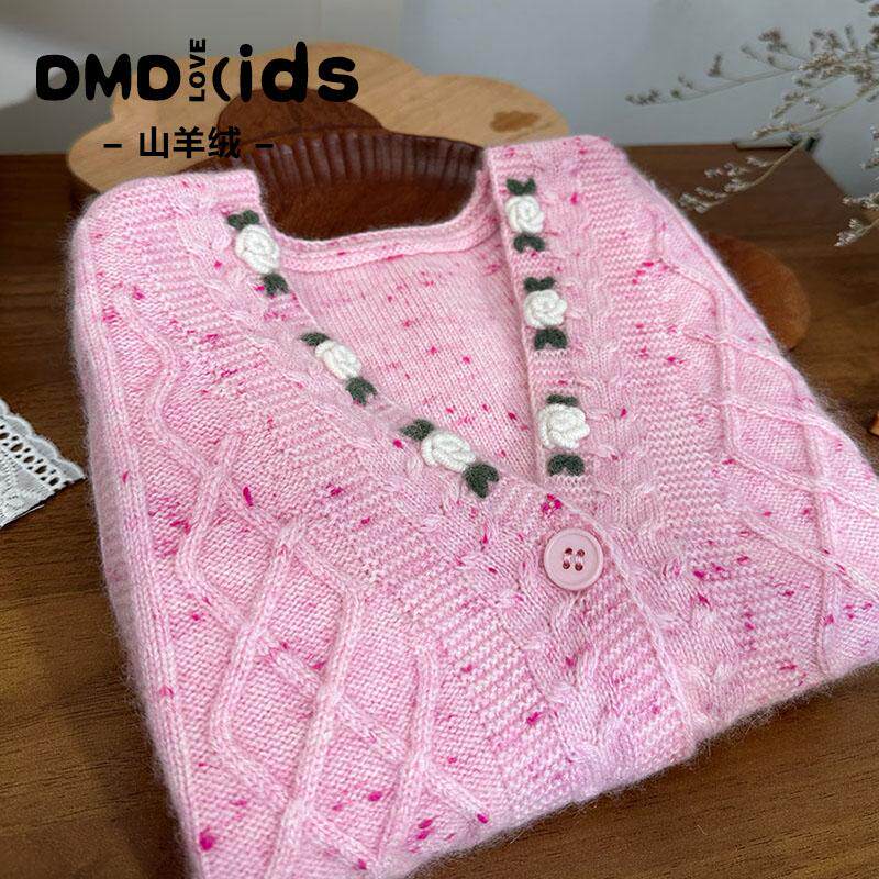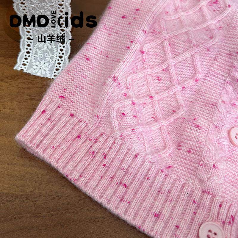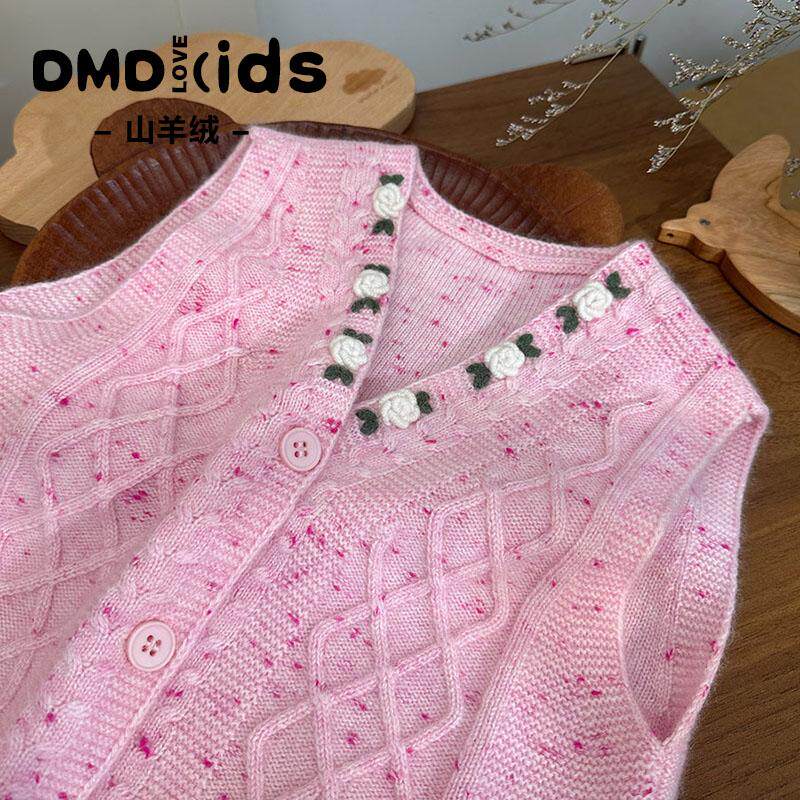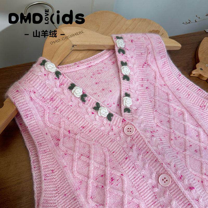 DUMENGDUO 女童羊绒衫粉色法式花朵马甲背心女宝宝山羊绒毛衣坎肩