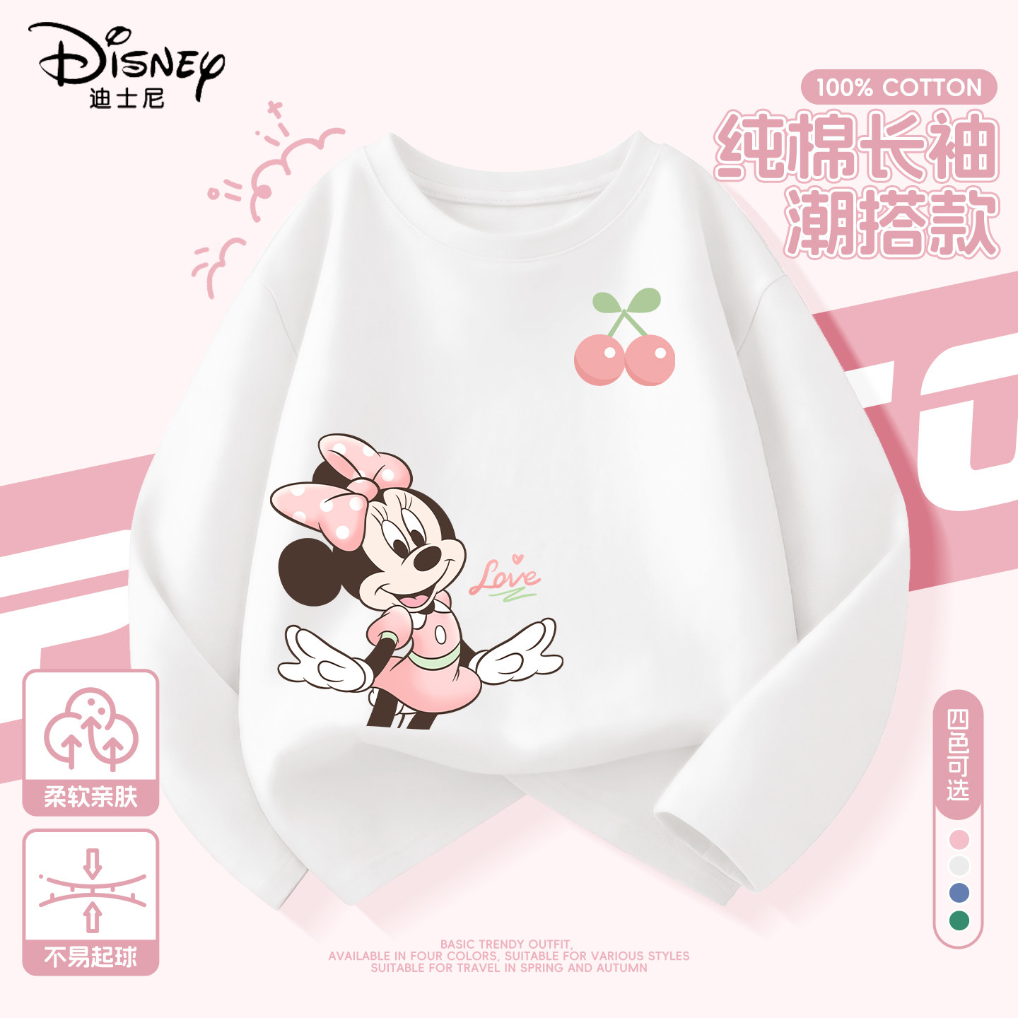 迪士尼女童长袖t恤洋气流行纯棉童装2026新款春装上衣儿童衣服女