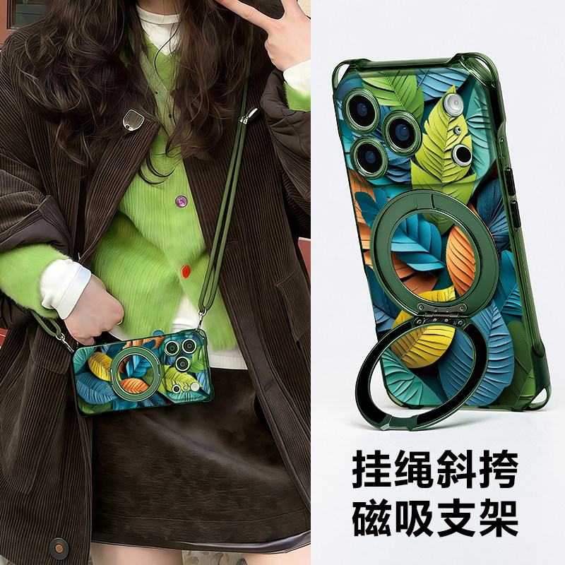 适用苹果16promax手机壳斜挎带挂绳iPhone15Pro新款保护套支架14磁吸12可背脖子13高级感链条17四角开孔16pro