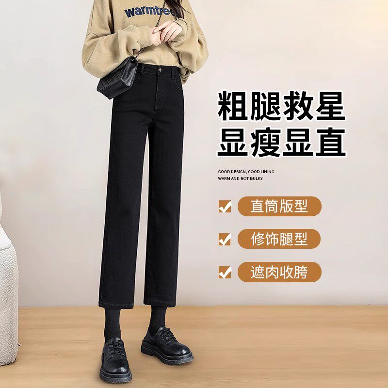 311线报网描述:加绒烟管裤 新款 小个子 法棍 牛仔裤 直筒