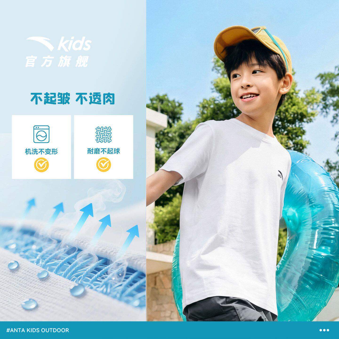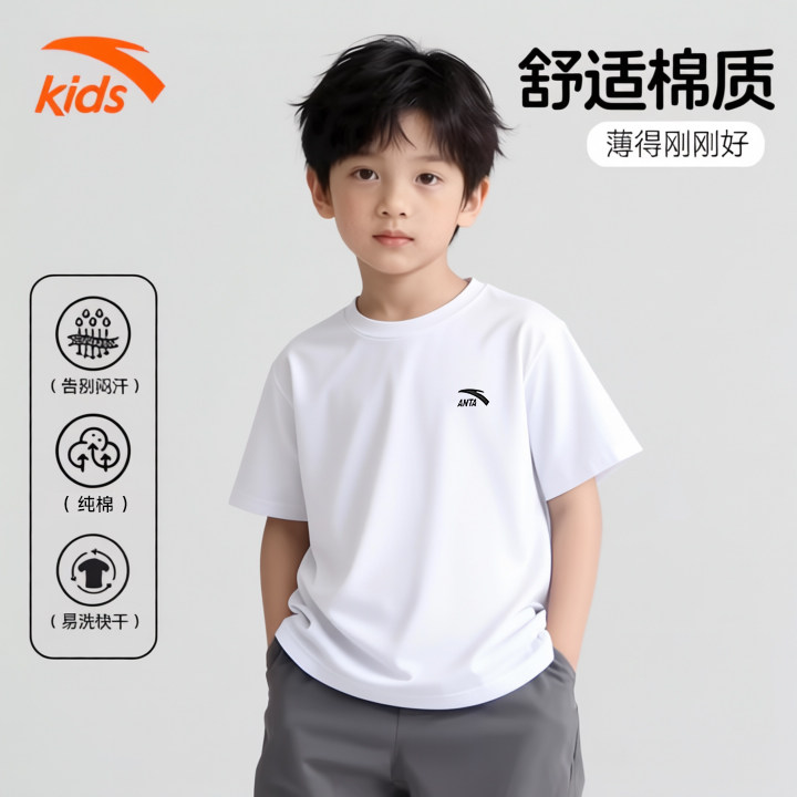安踏儿童运动短袖男童女大小童2026吸湿透气上衣夏季新款纯棉T恤