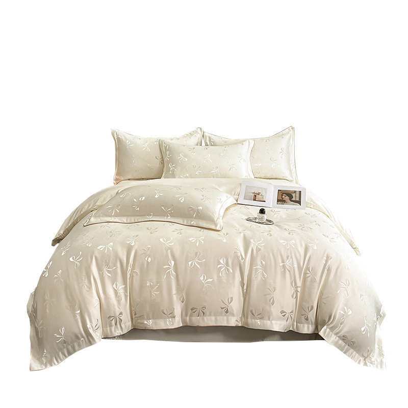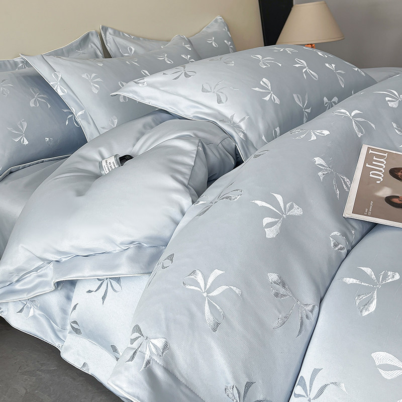 轻奢凉感夏季冰丝四件套提花真丝滑裸睡被套天丝床单床笠款高级感