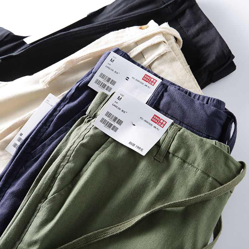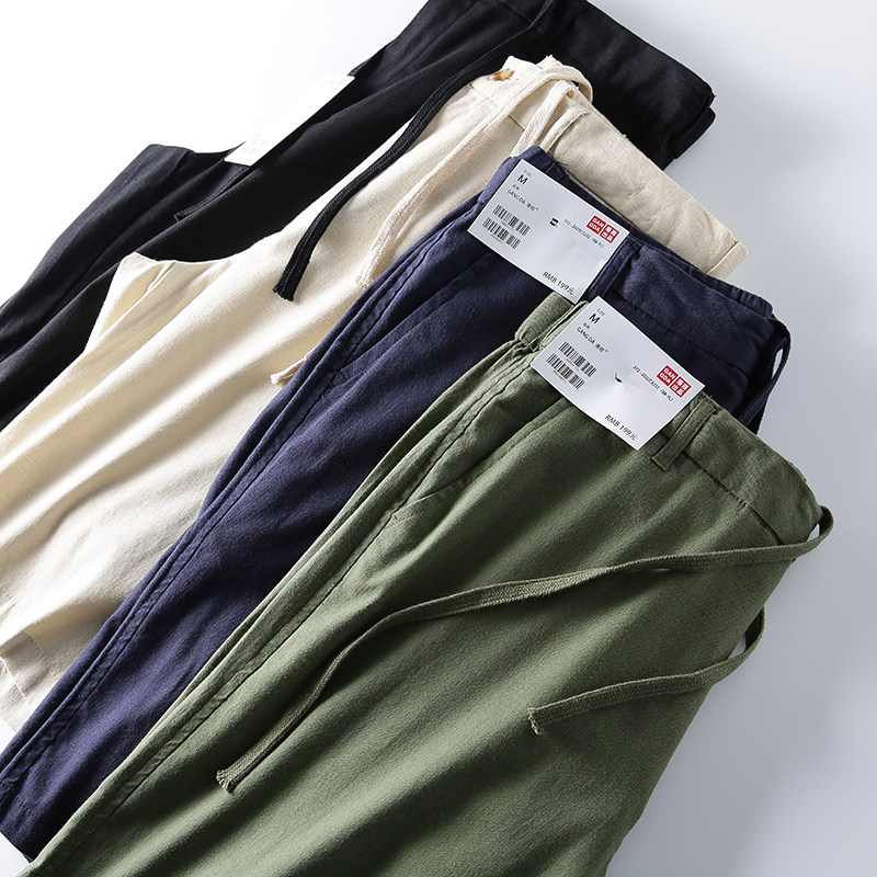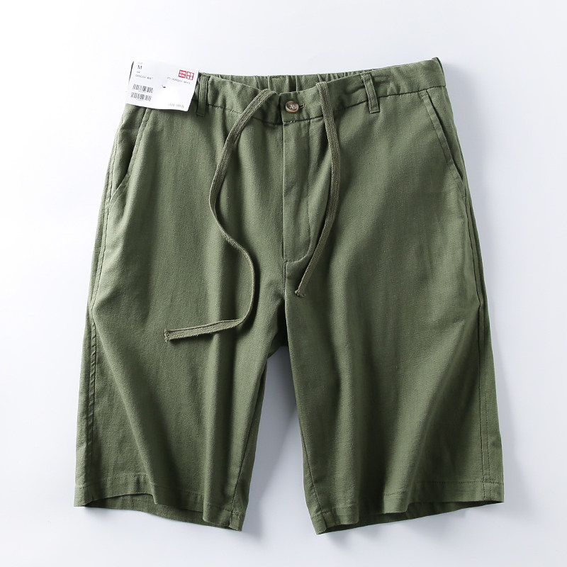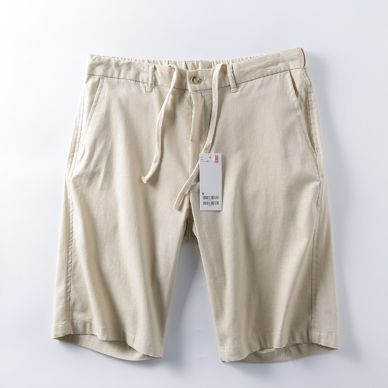 日单 夏季男款天然亚麻混纺薄款透气舒适休闲棉麻短裤 纯色五分裤