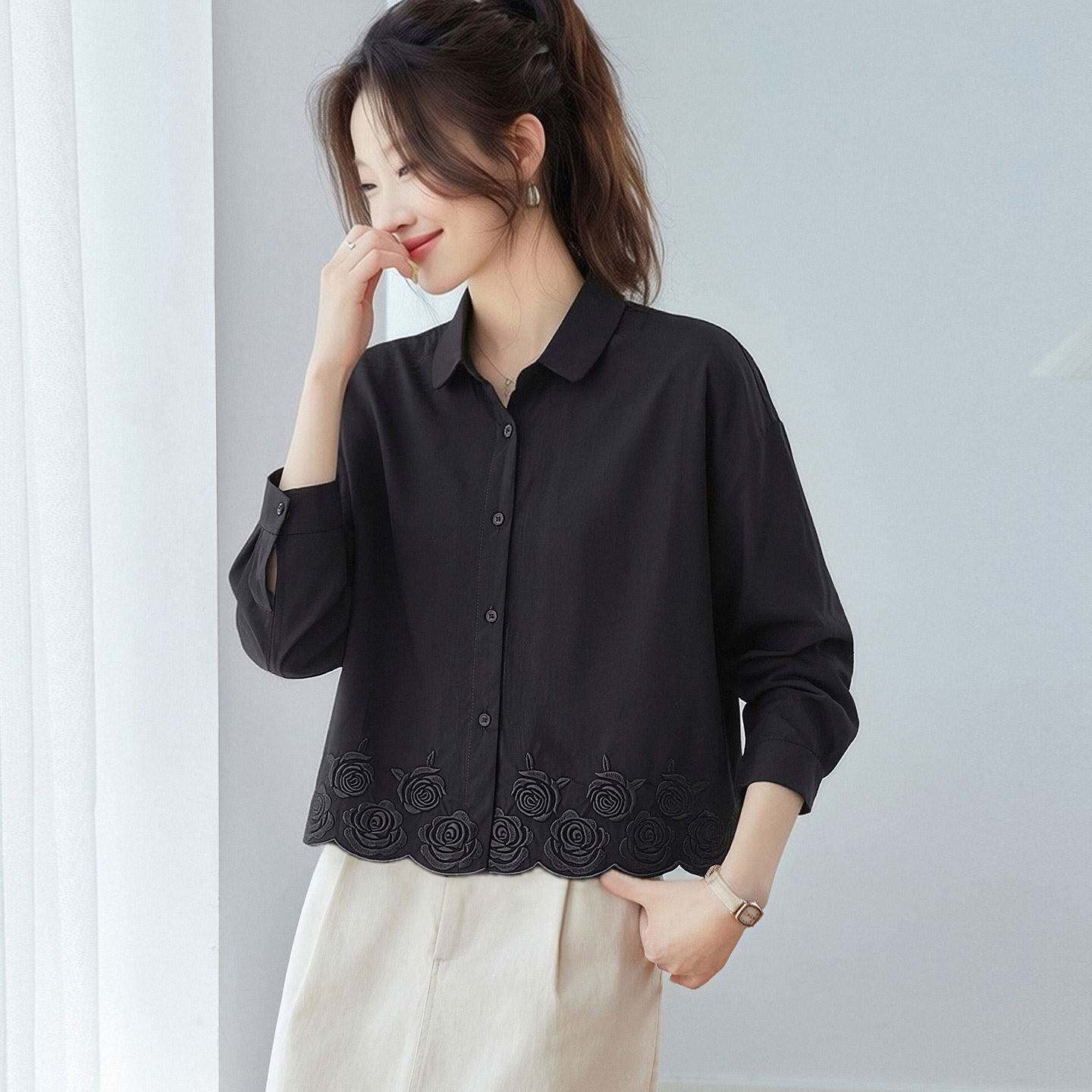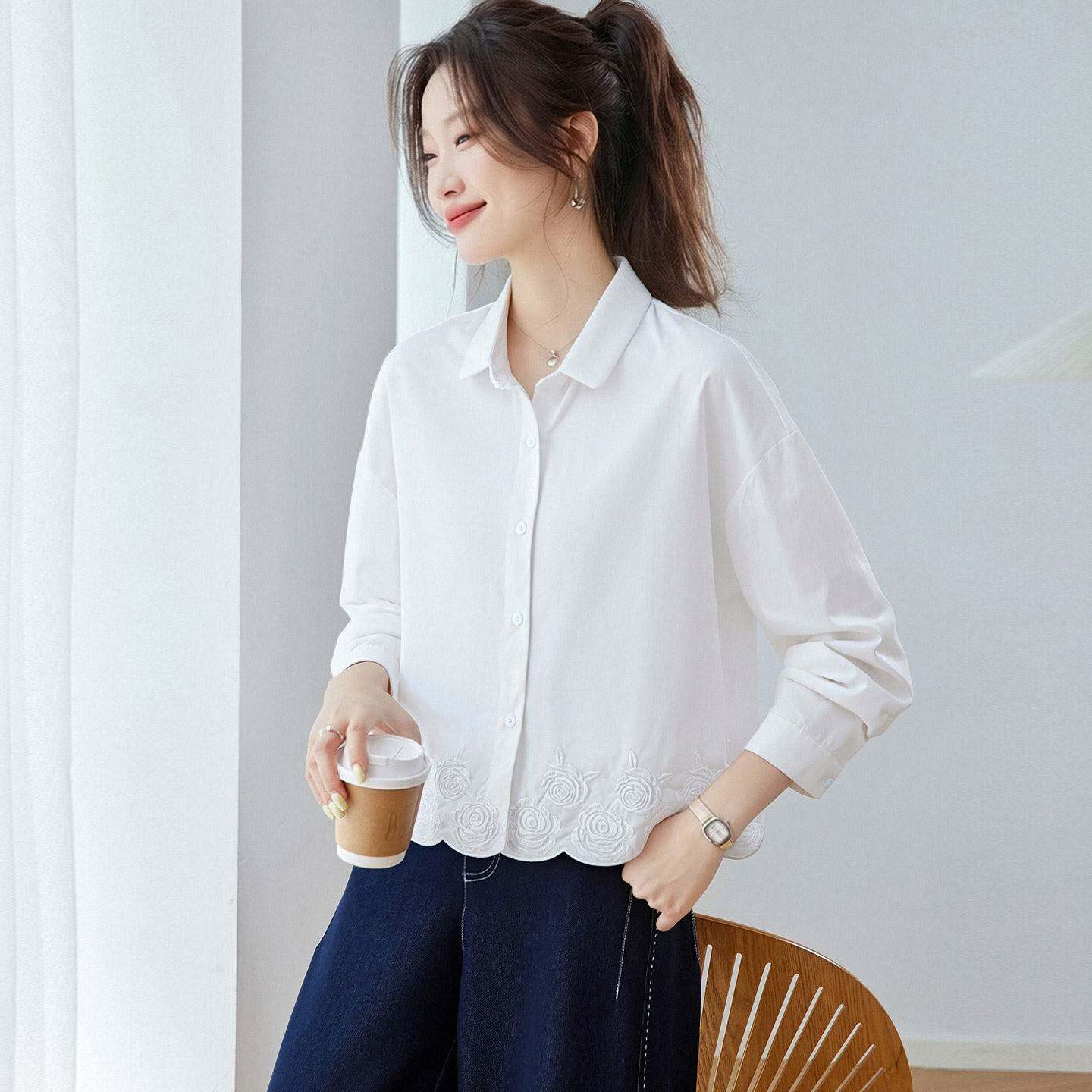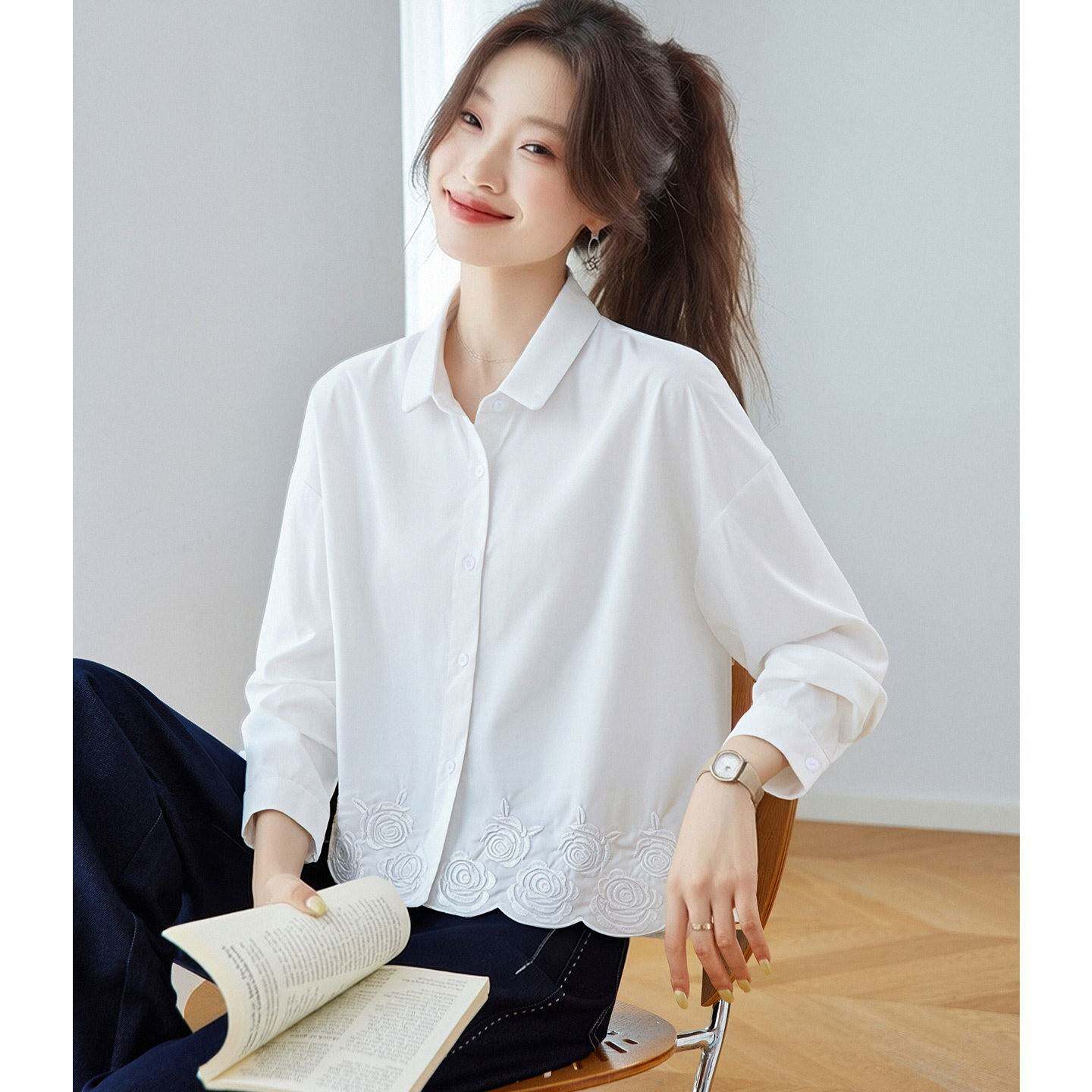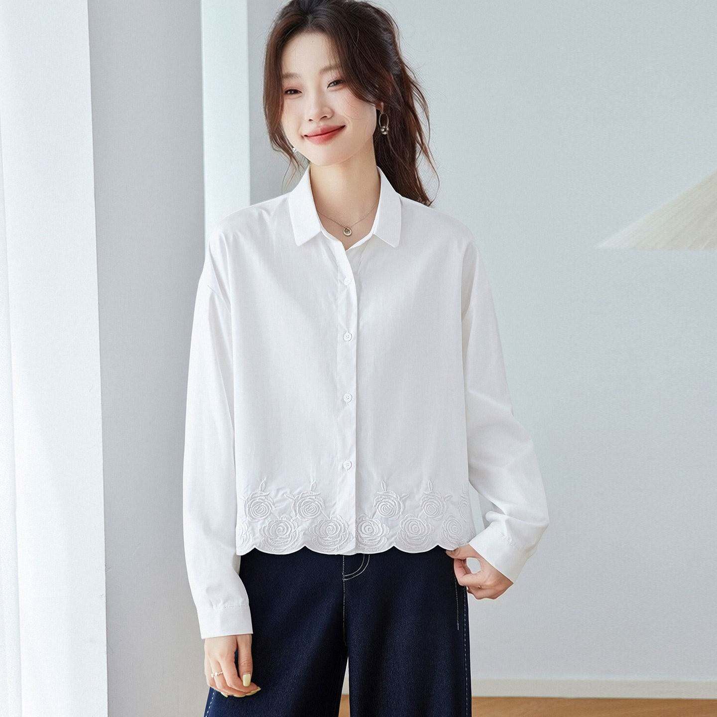 纯棉衬衫女款2026新款春装轻奢高级感衬衣减龄洋气提花遮肚子上衣