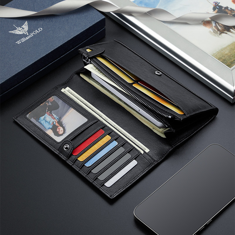 保罗钱包男士长款真皮钱夹植鞣牛皮2026新款高端时尚休闲潮流手包