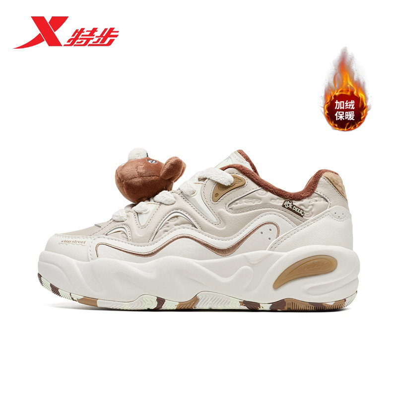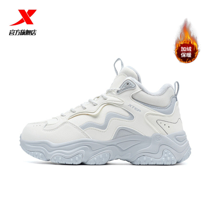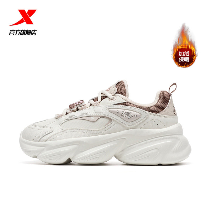 特步女鞋跑鞋2026春季新款皮面保暖运动休闲鞋老爹鞋户外跑步鞋