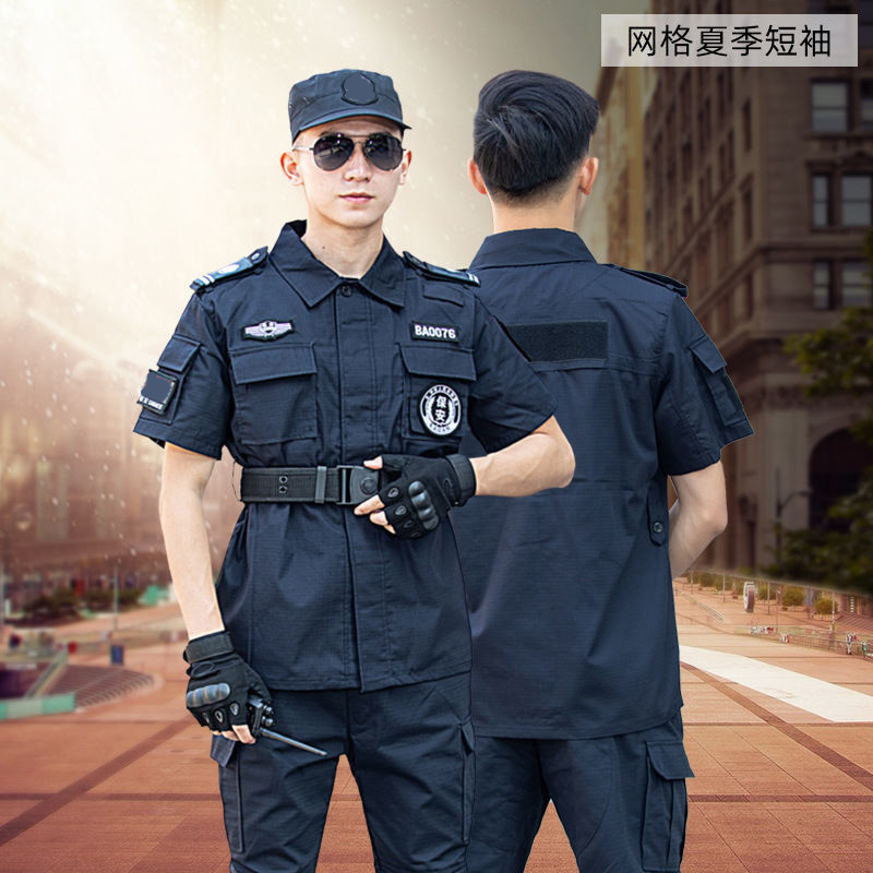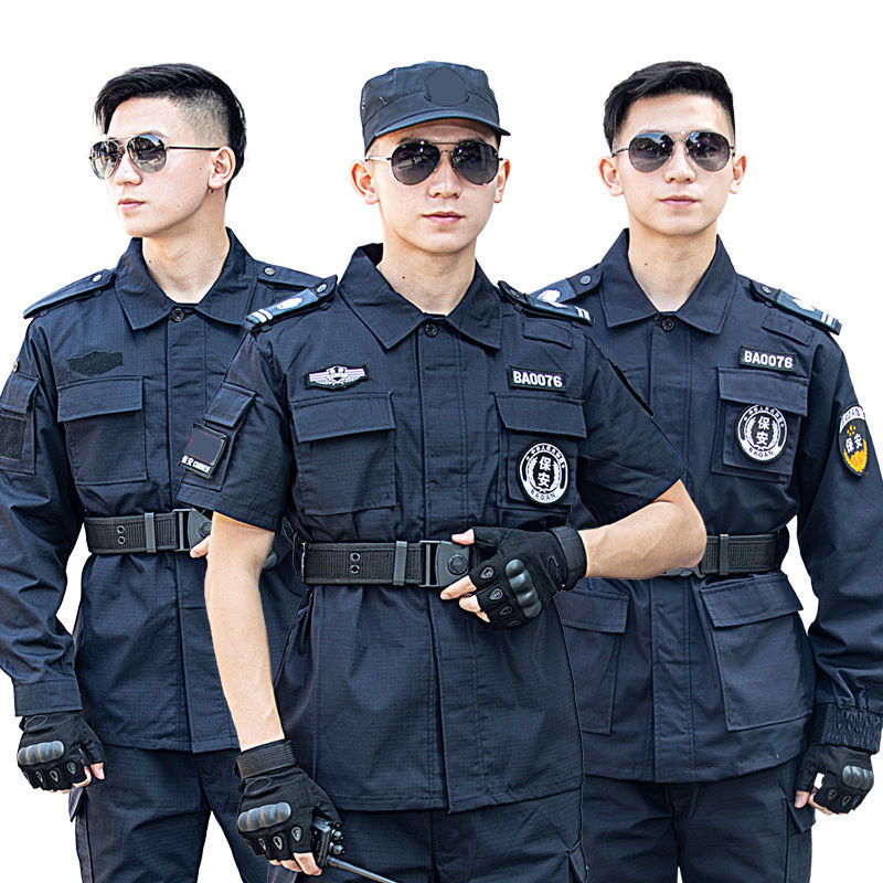 正品藏青网格执勤服长短袖保安春夏秋冬作训练服冬季特训大衣标志