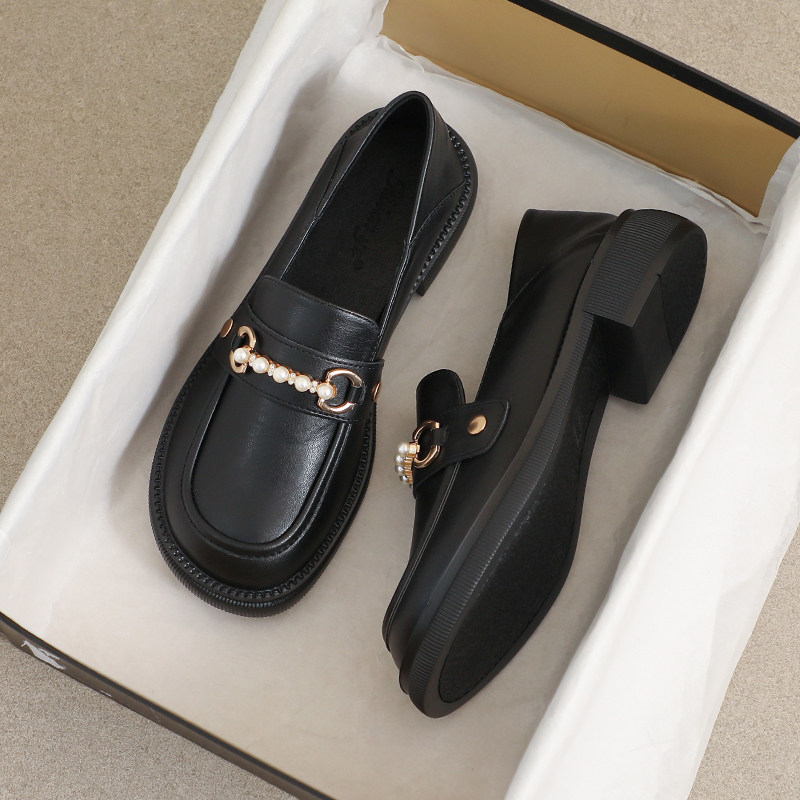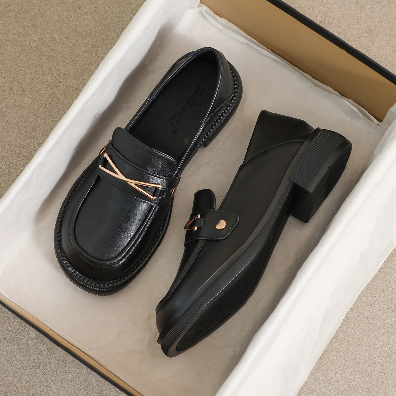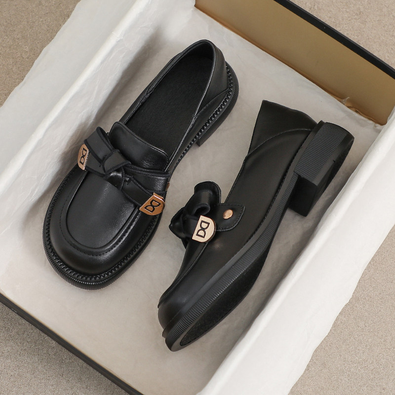 牛皮版~小皮鞋女款2026新款夏季英伦风黑色大码女鞋41到43乐福鞋