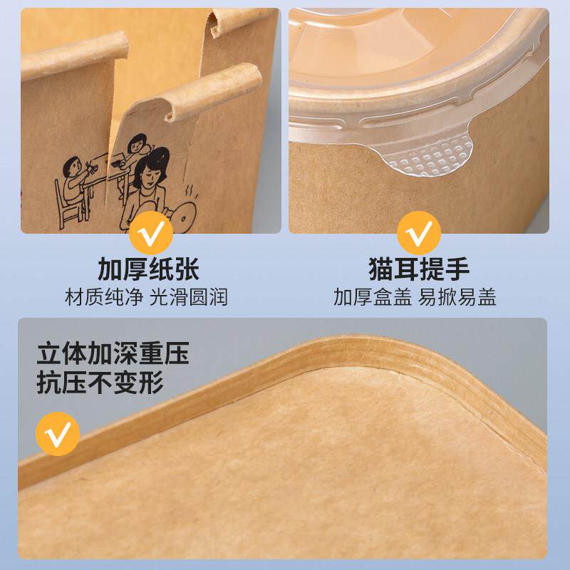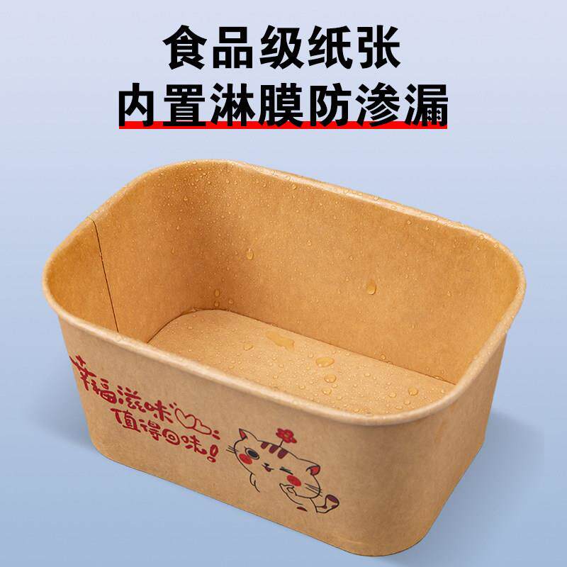 一次性餐盒牛皮纸长方形打包盒饭盒外送野餐轻食便当盒水果盒餐盒