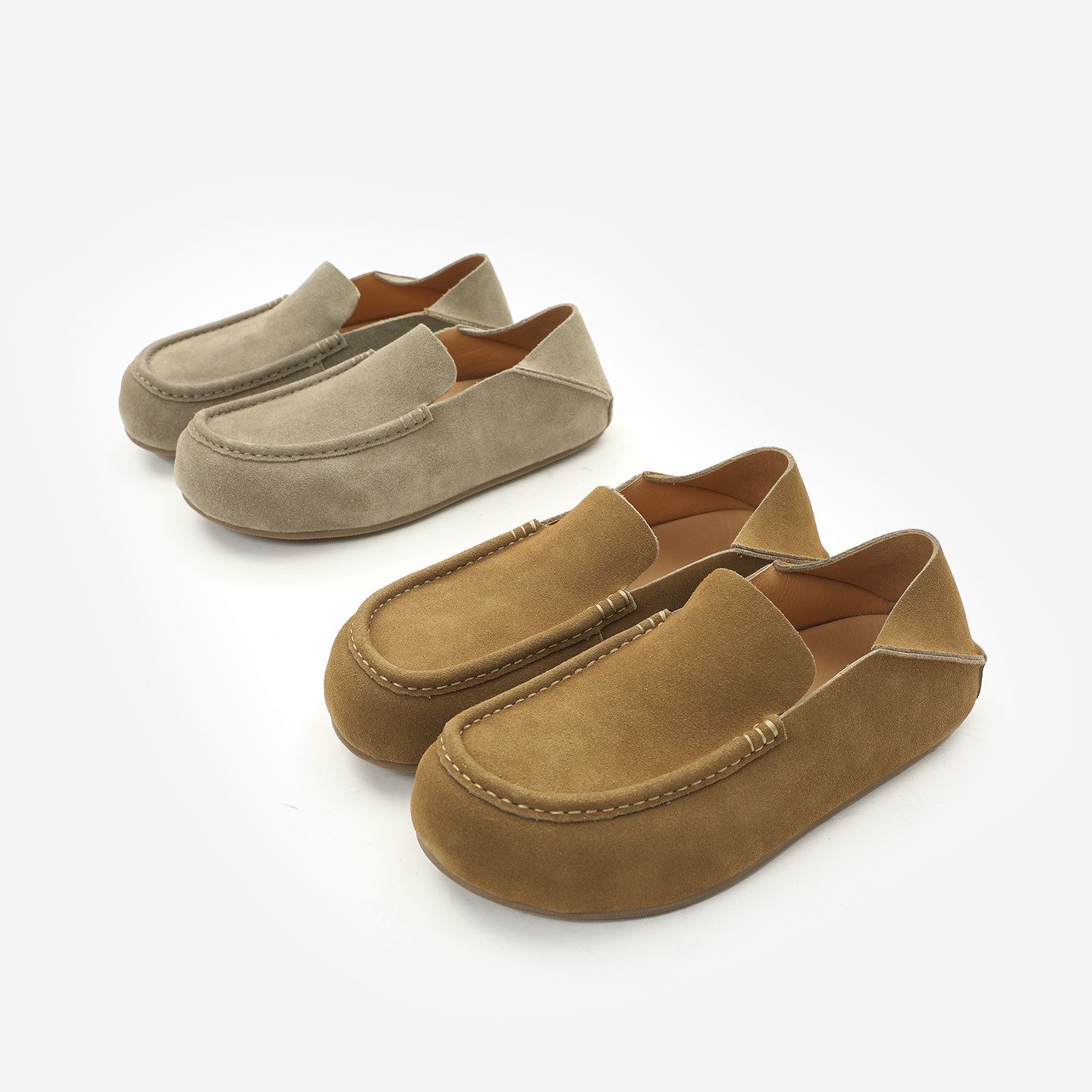 2026春夏新品两穿真皮乐福鞋男款半拖一脚蹬懒人鞋厚底舒适勃肯鞋