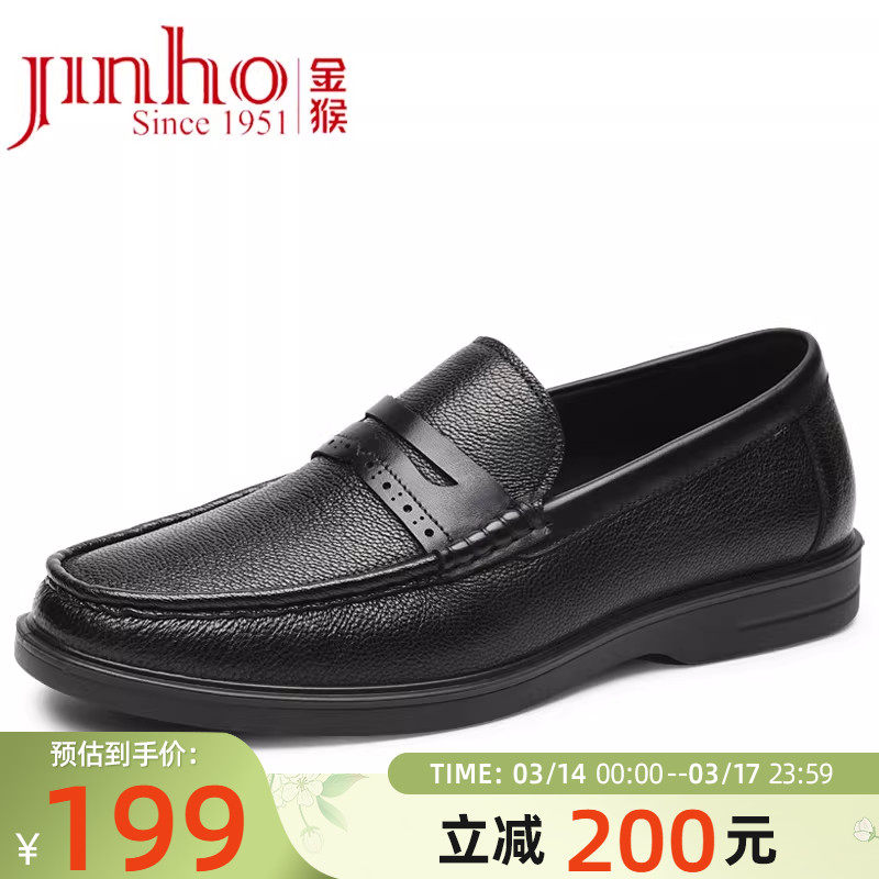 金猴皮鞋男春季羊皮套脚商务休闲软底轻便黑色真皮乐福鞋男士皮鞋