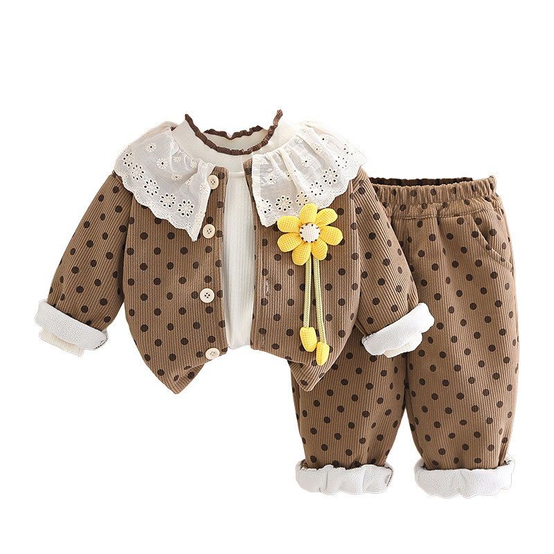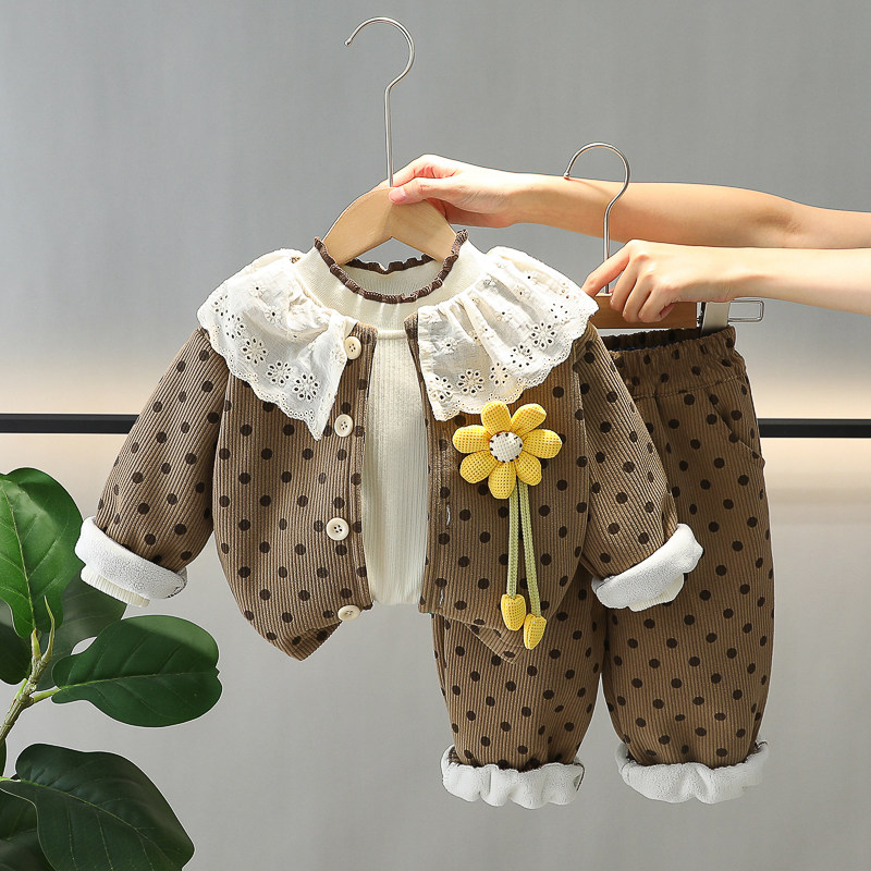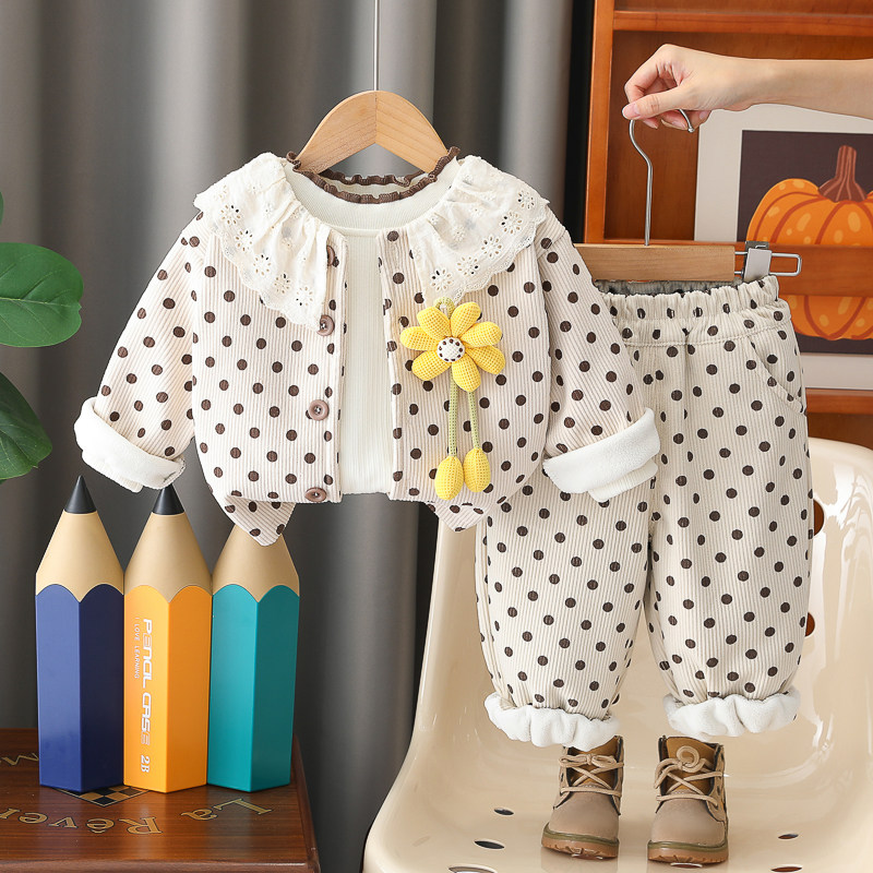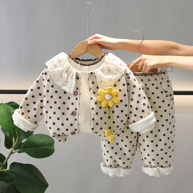 女童洋气卡通秋冬装加绒加厚三件套2026新款婴幼儿宝宝冬季套装潮