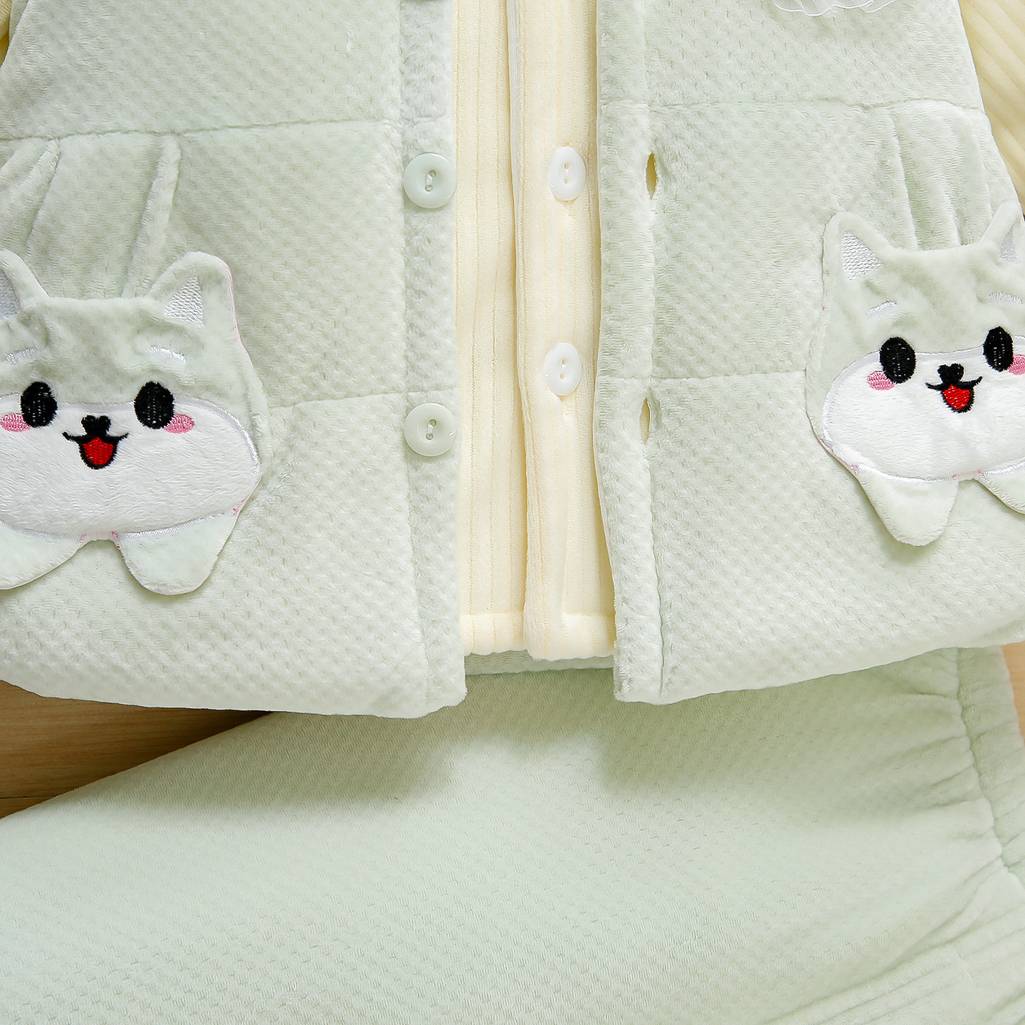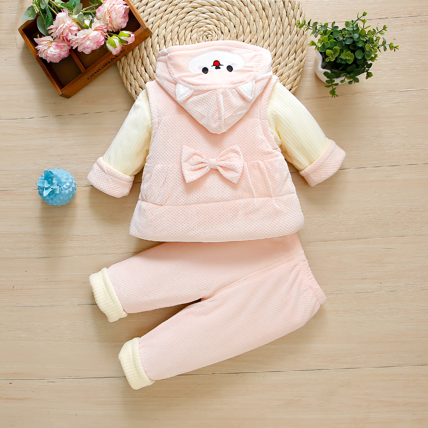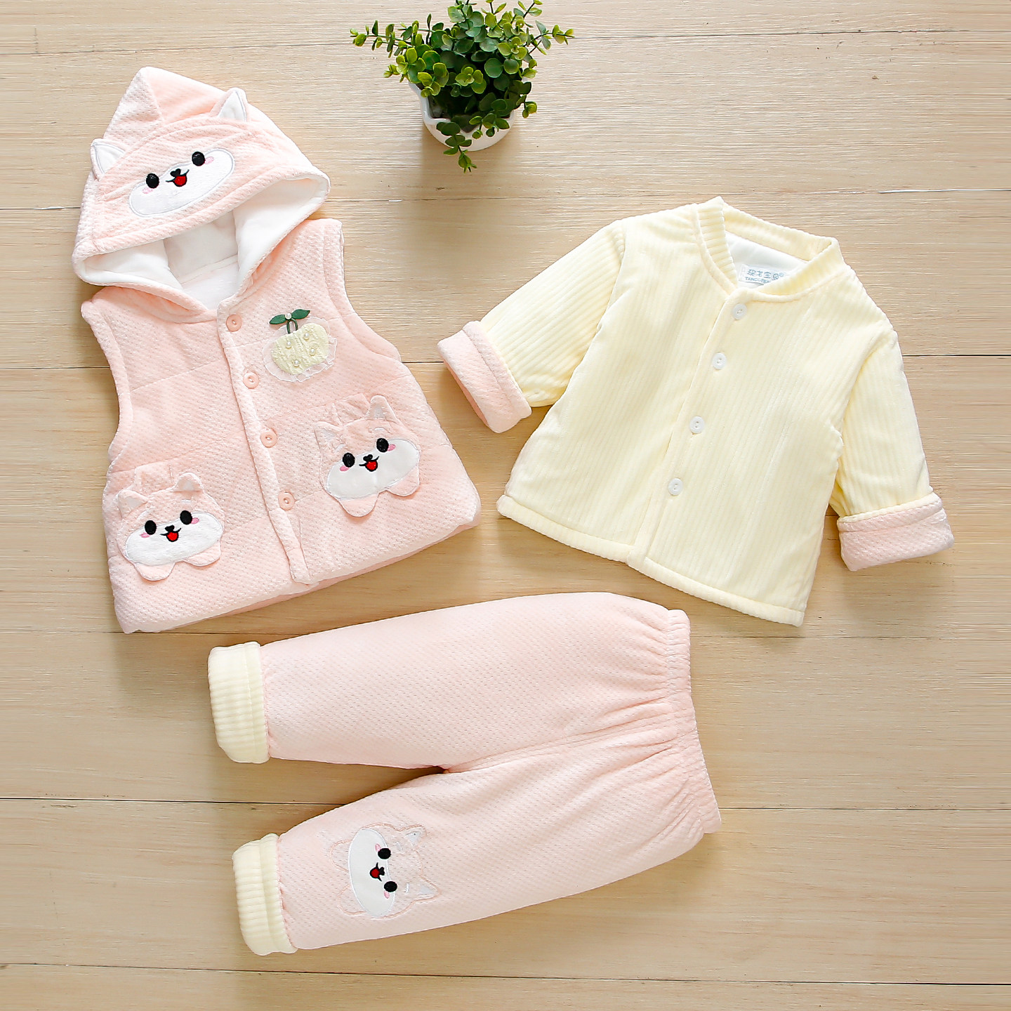 女宝宝春秋季夹棉三件套3-6个月婴儿冬装加厚0-1岁半保暖婴儿春装