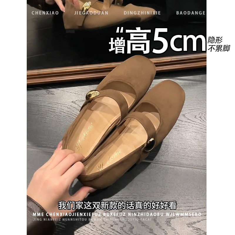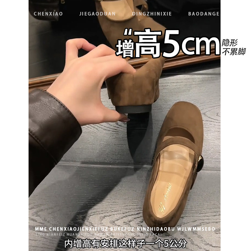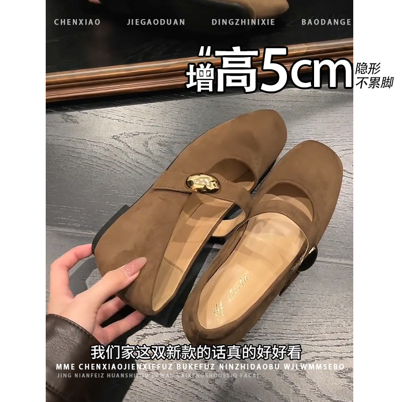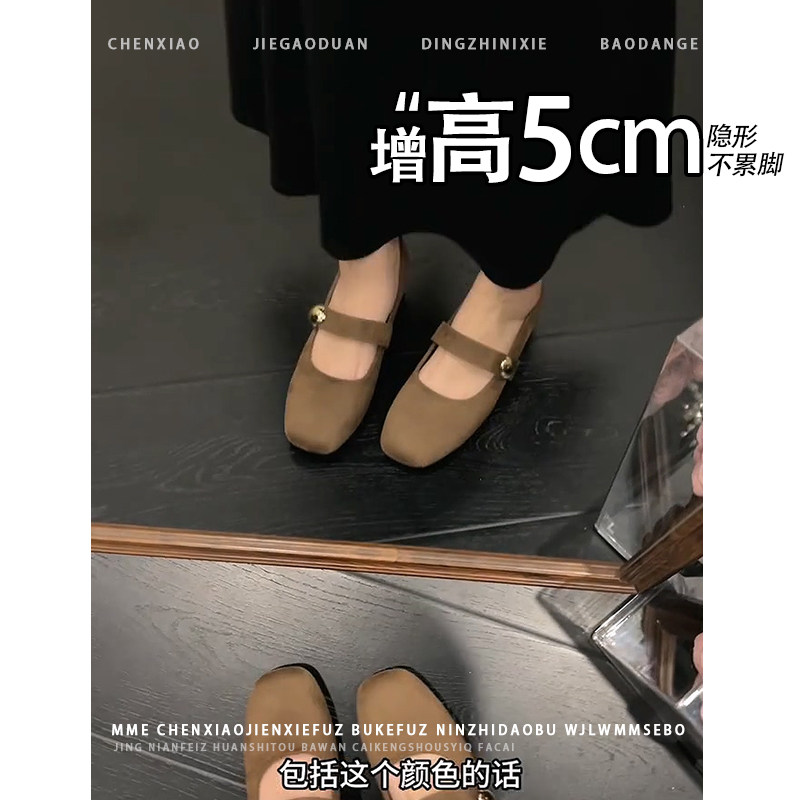 不累脚!小个子内增高5CM玛丽珍鞋2026秋新款金属装饰浅口单鞋女