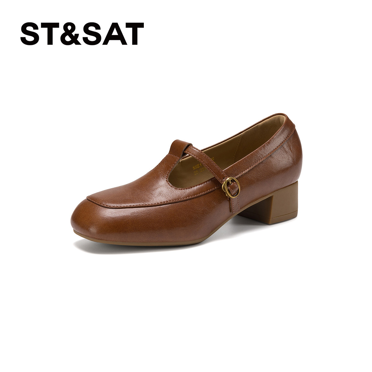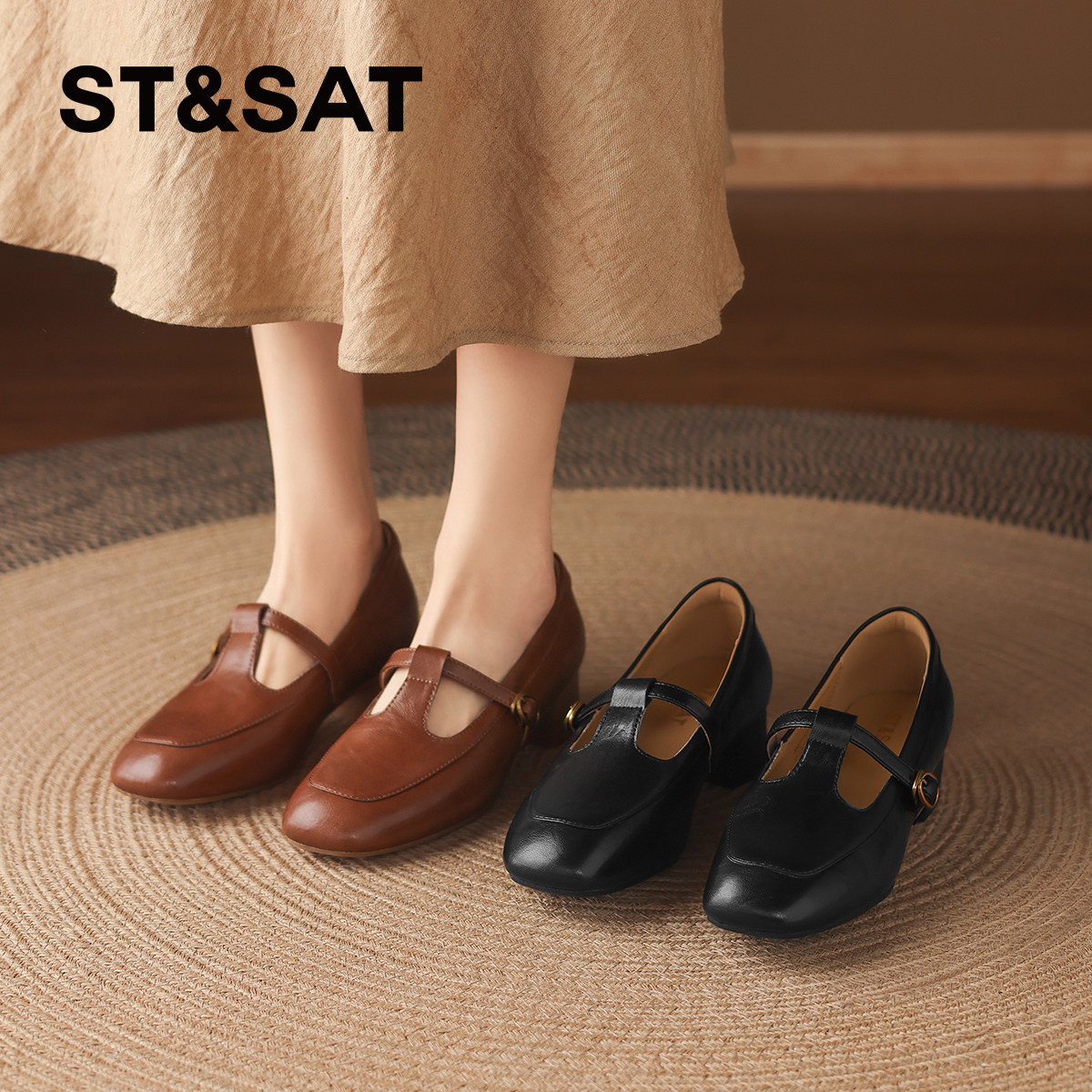 星期六爆款真皮浅口单鞋女鞋2026春季新款羊皮粗跟乐福鞋玛丽珍鞋