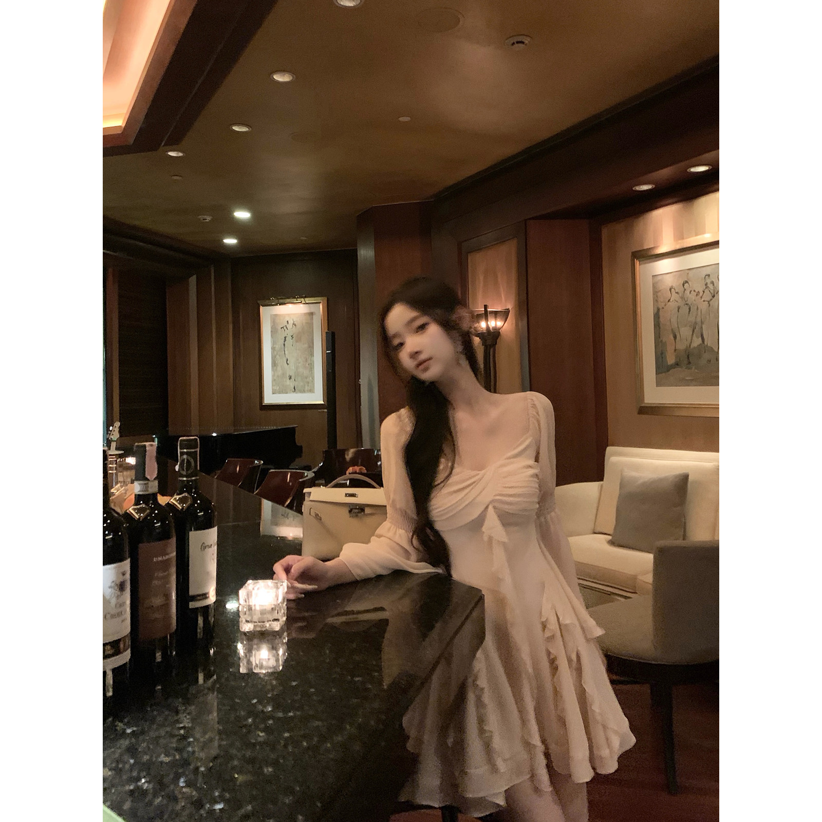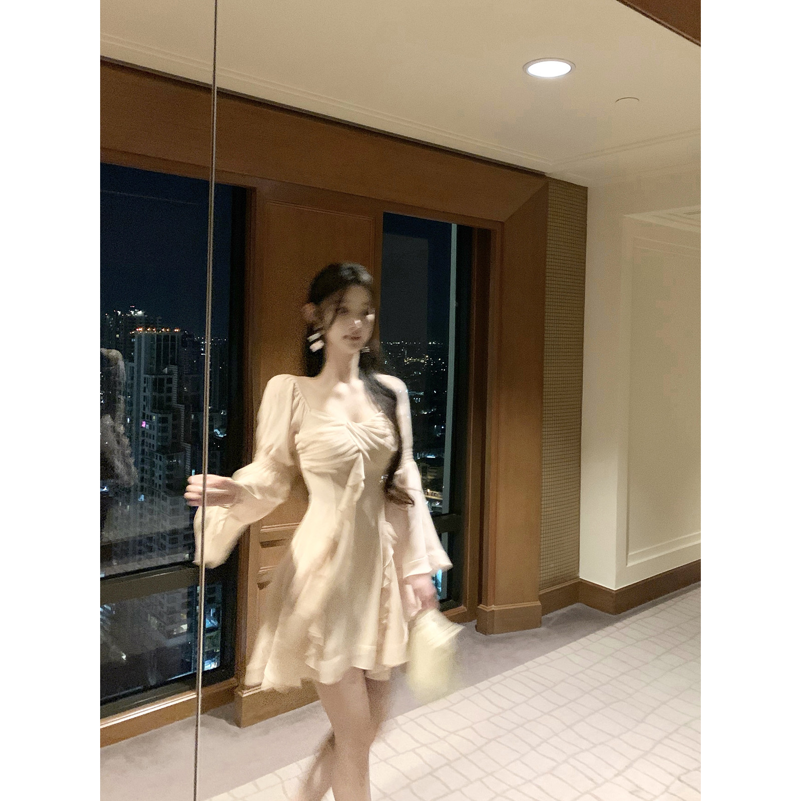 Hotdog 热狗很辣【古董仲夏】喇叭袖雪纺连衣裙女春夏季长袖短裙