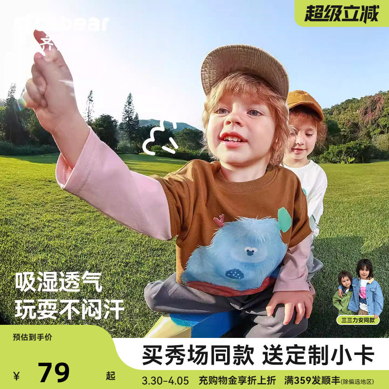 【秀场同款】[10A抗菌]齐齐熊宝宝t恤长袖春装男童假两件儿童上衣