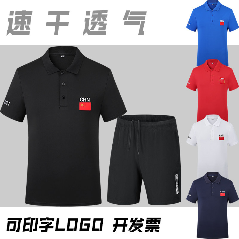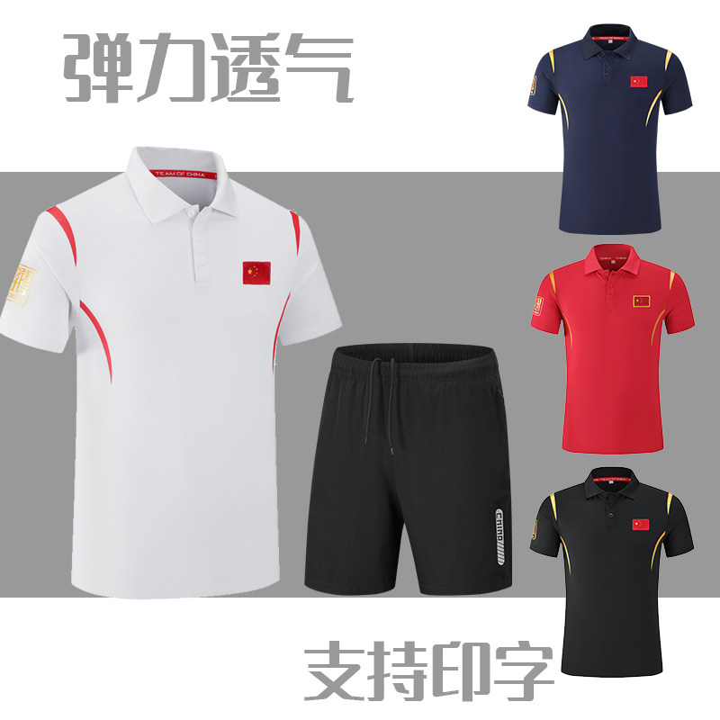 中国队运动服套装速干Polo衫短袖短裤武术体育生田径武术训练工服