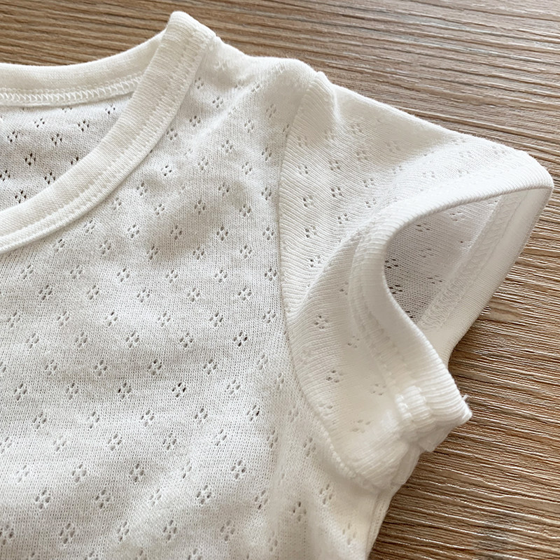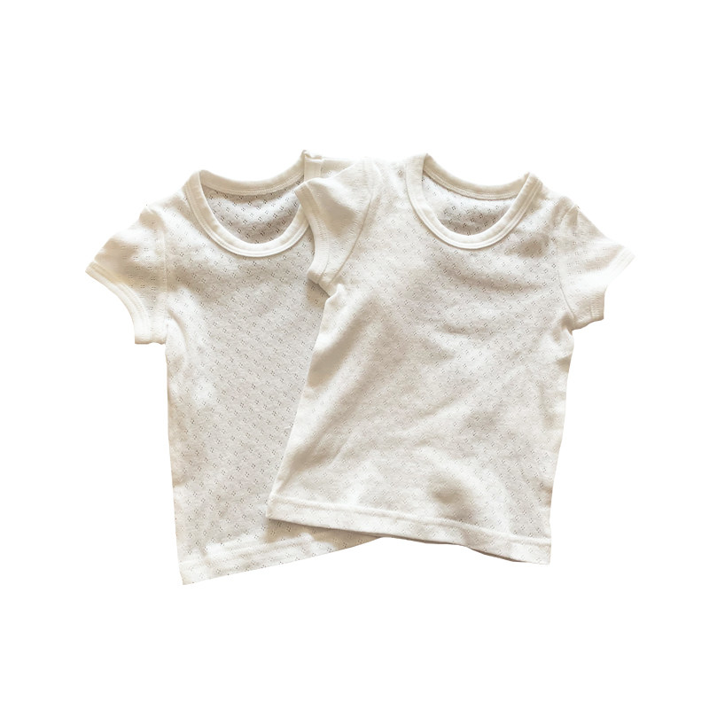 无荧光儿童纯白打底t恤男童纯色上衣女童白色网眼短袖家居服睡衣