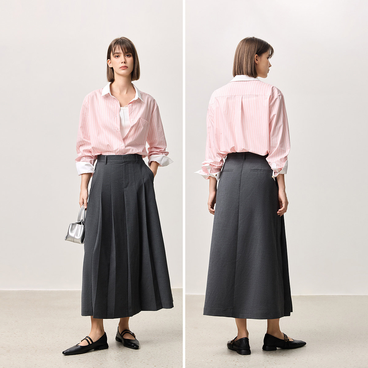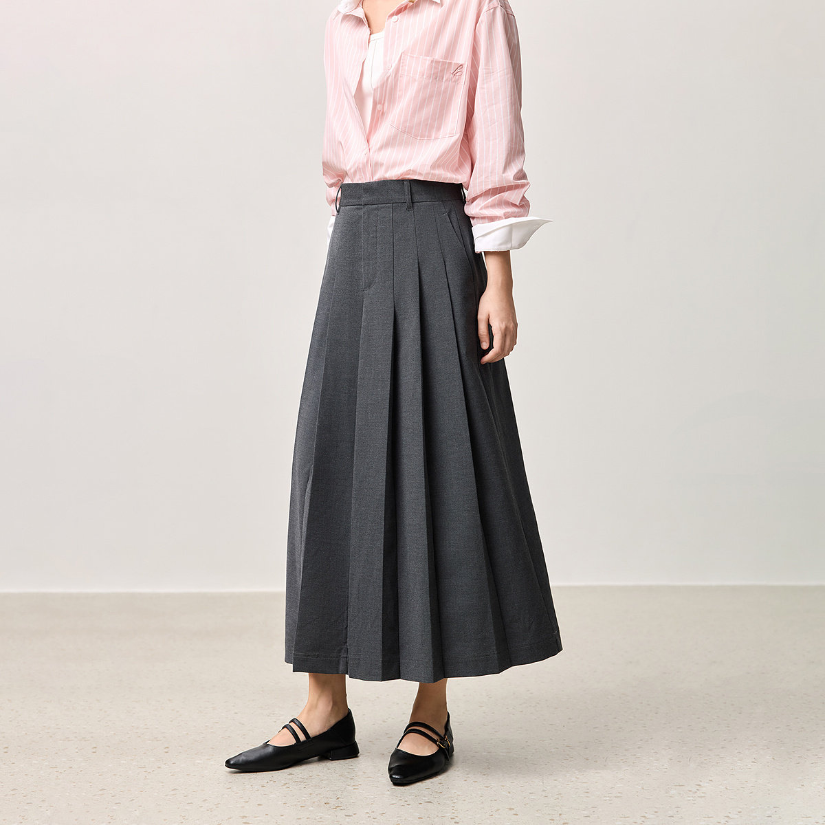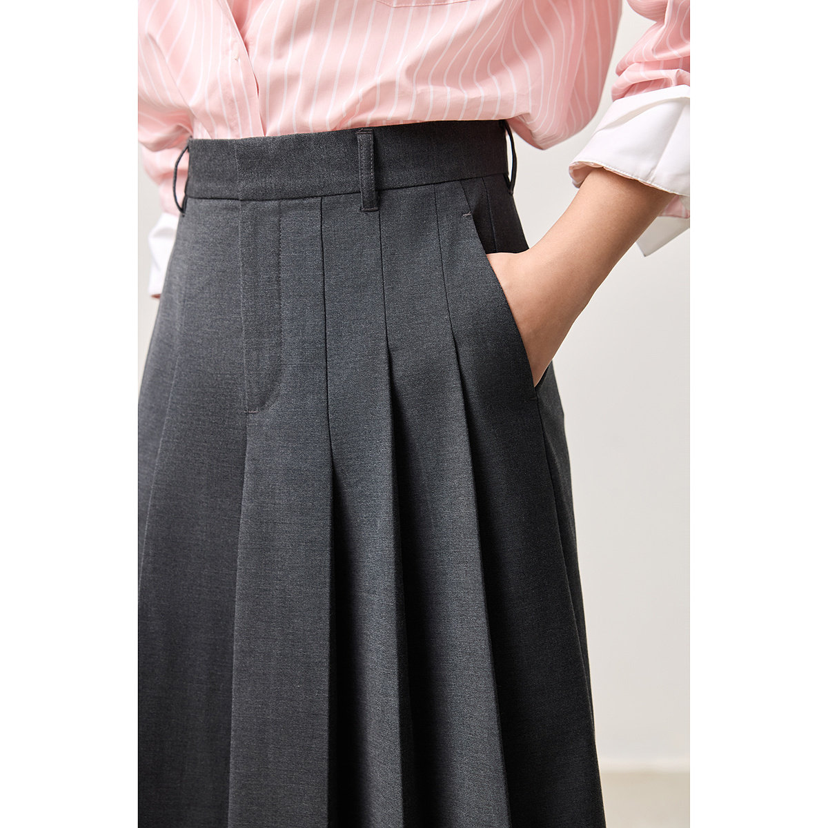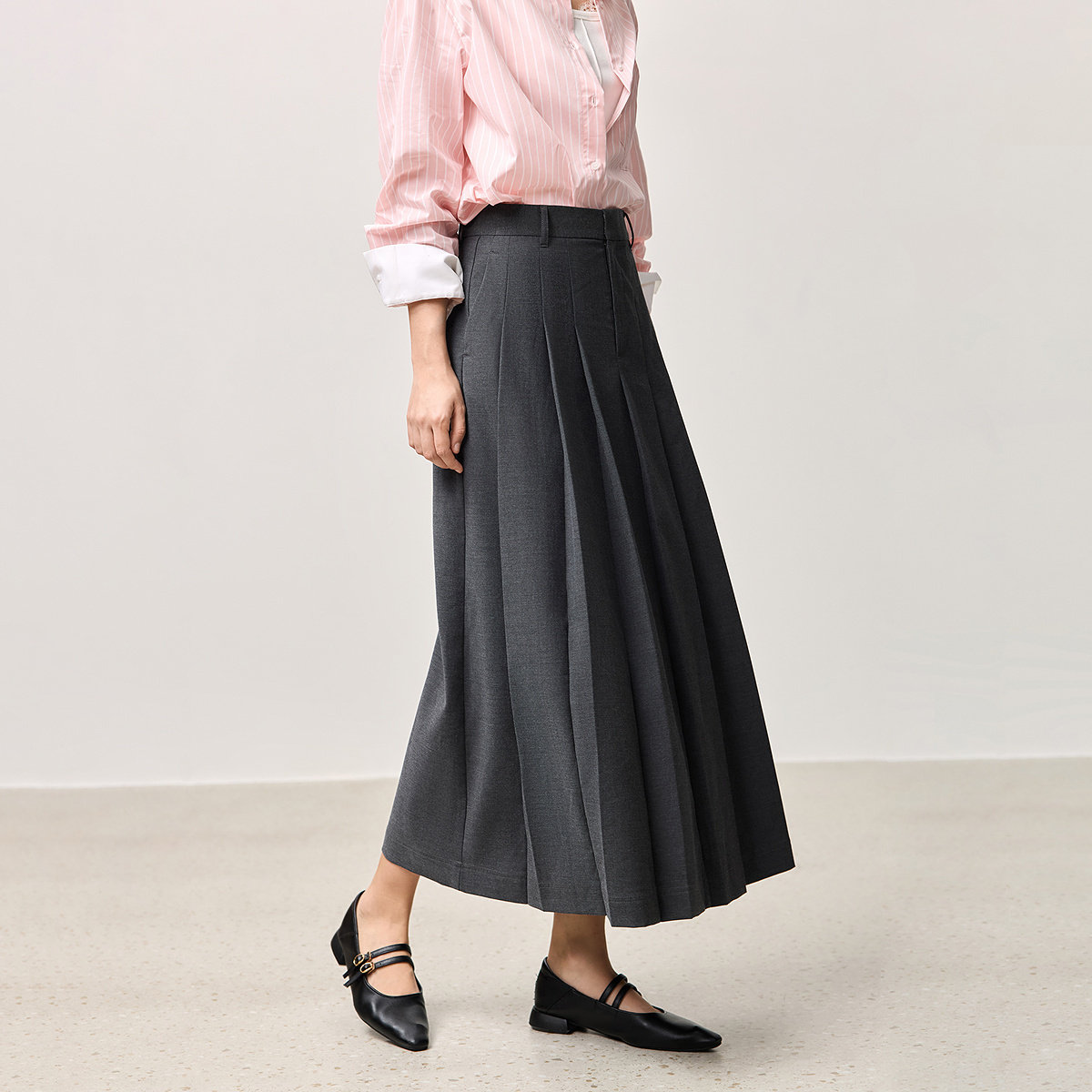 【商场同款】LILY2025新款女装格雷系极简风百褶裙半身裙伞裙女