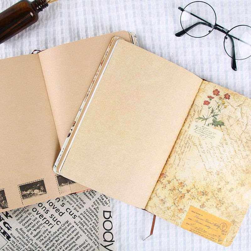 直销新款A5欧式复古风格彩页日记本个性创意牛皮纸插画心情笔记本