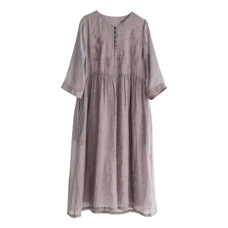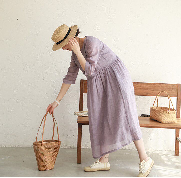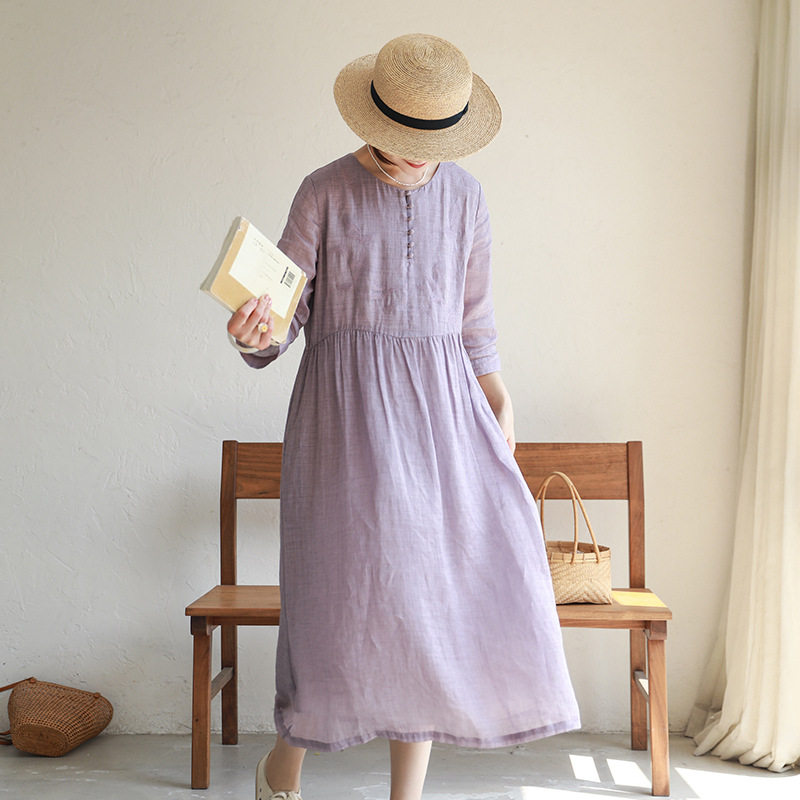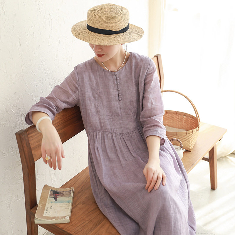 2026新款复古V领女白色文艺苎麻连衣裙显瘦棉麻气质仙气汉服长裙