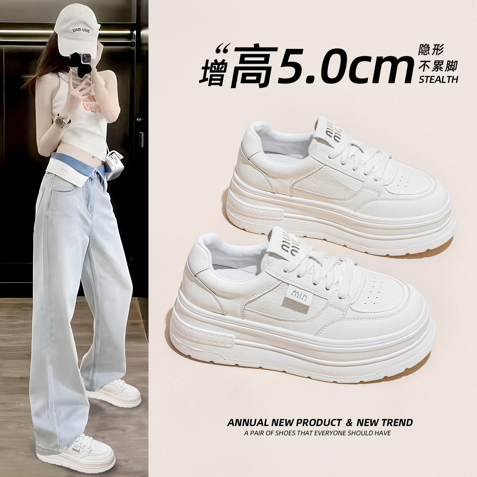厚底小白鞋女款2026春季新款百搭增高巨好看不累脚运动休闲板鞋子