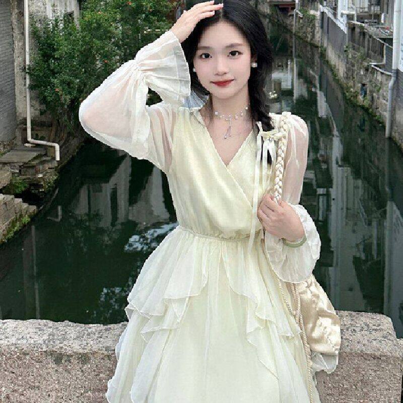 温柔风连衣裙秋仙女超仙2026高级感法式气质海边度假长袖裙子长款