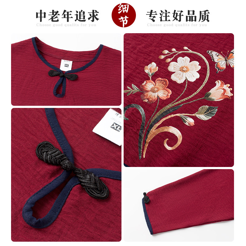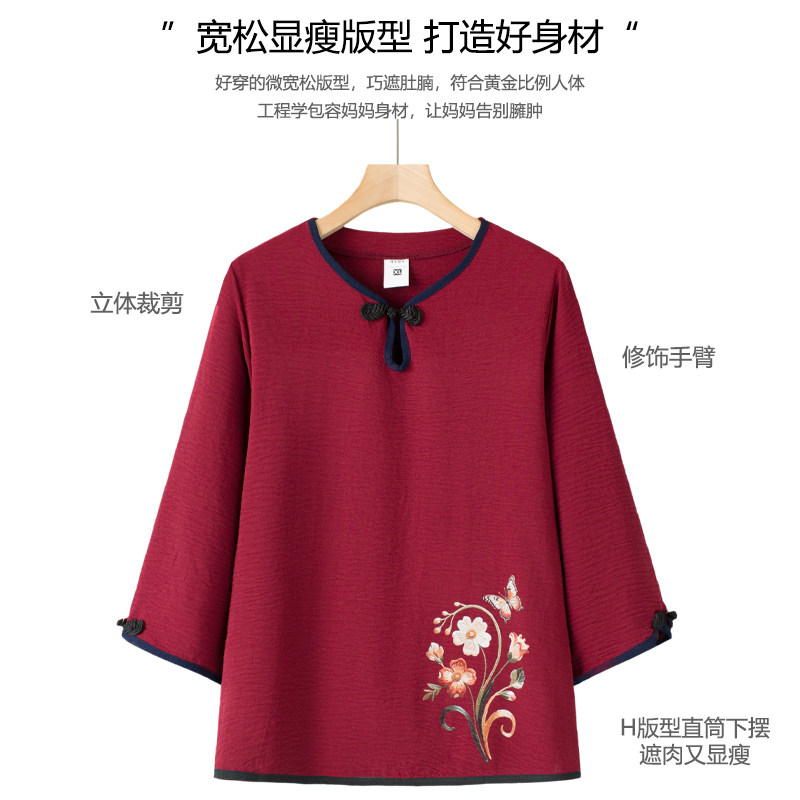 七分袖套头T恤妈妈装中老年上衣女款奶奶轻薄短袖婆婆新中式衣服