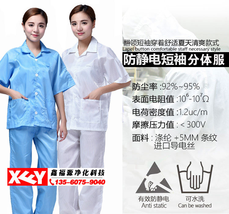 夏季新款短袖上衣防静电分体男防尘服蓝长袖洁净防护服女工作服