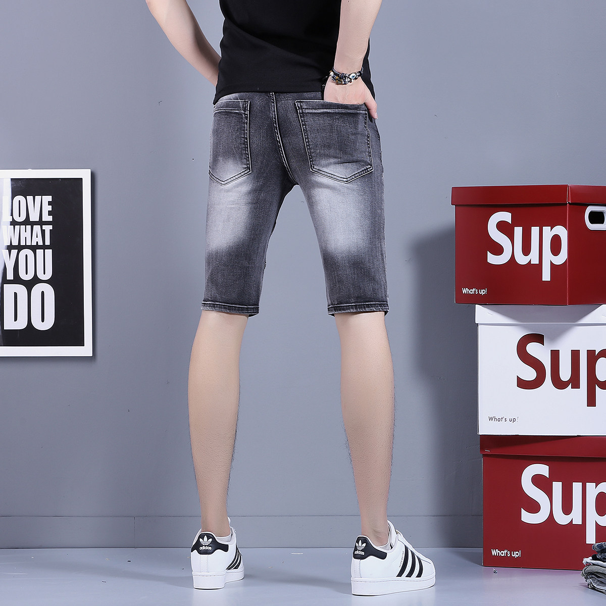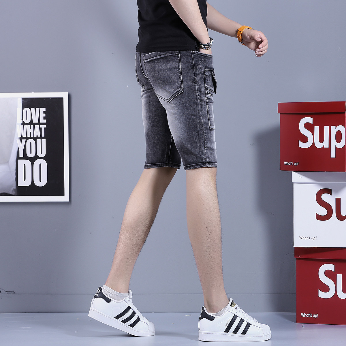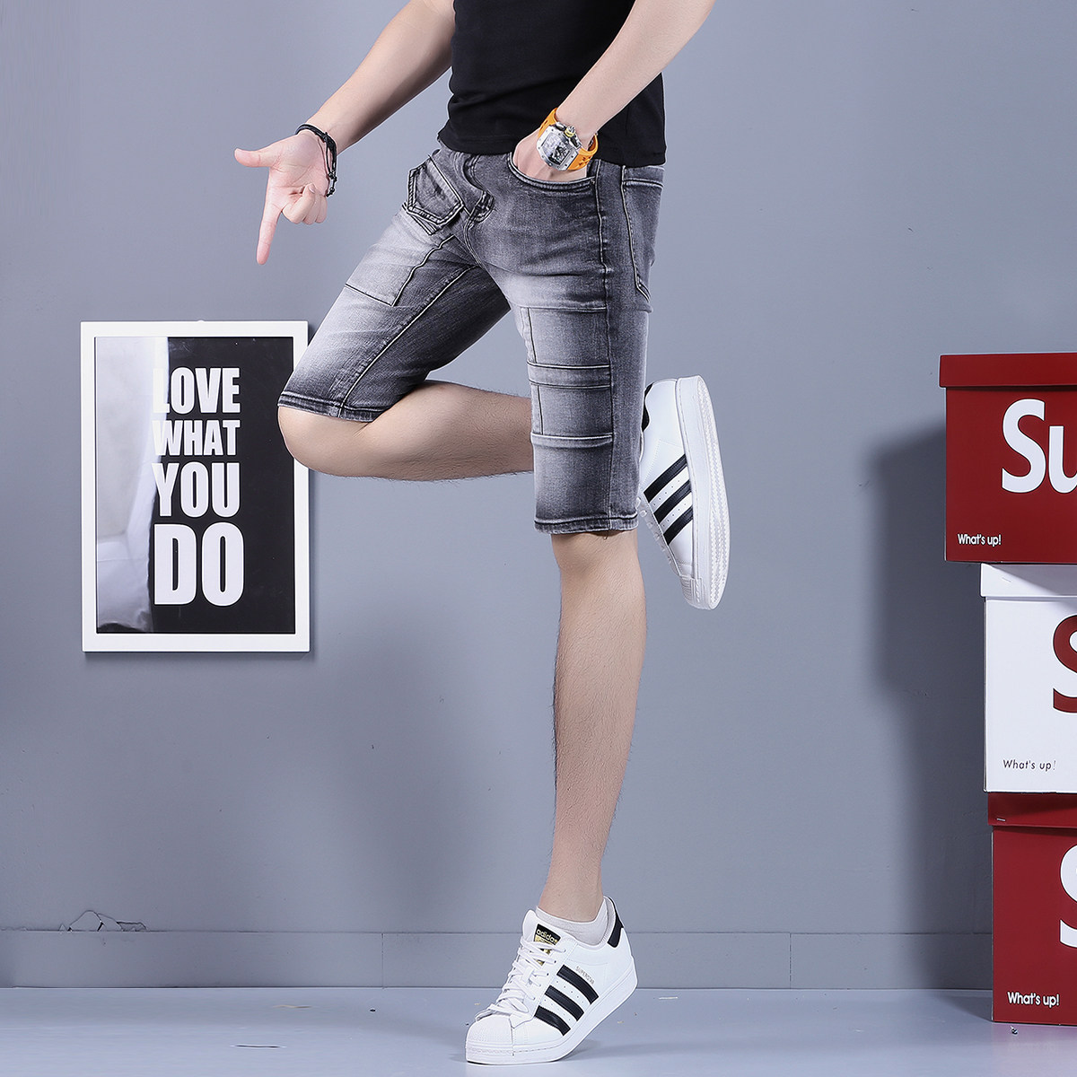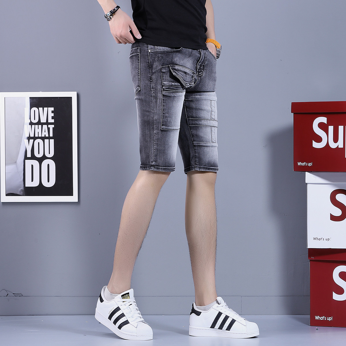 夏季薄款工装牛仔短裤男复古潮牌中裤男士修身休闲弹力五分裤男款