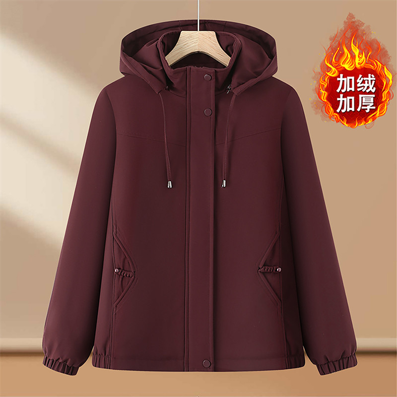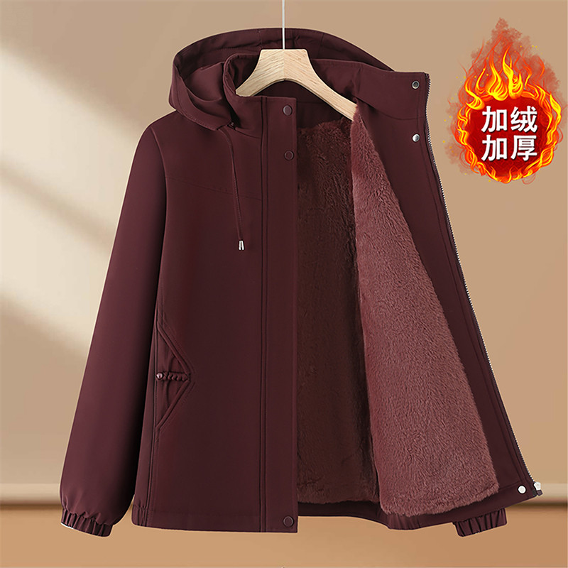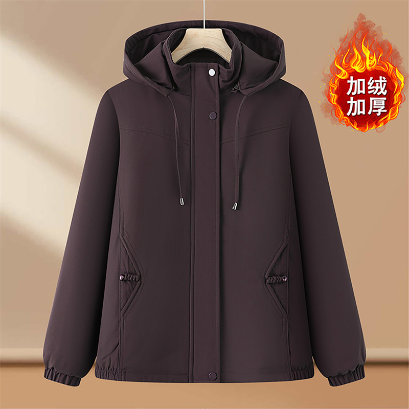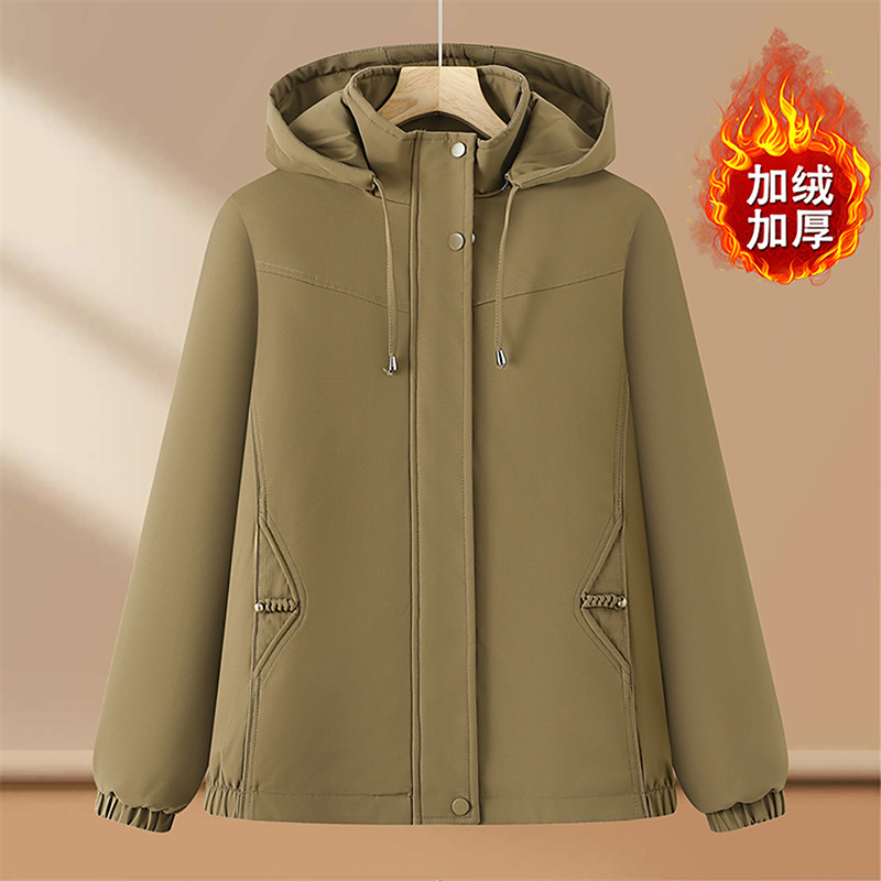 加绒加厚保暖连帽棉服女2025冬季新款时尚洋气纯色防寒百搭外套潮