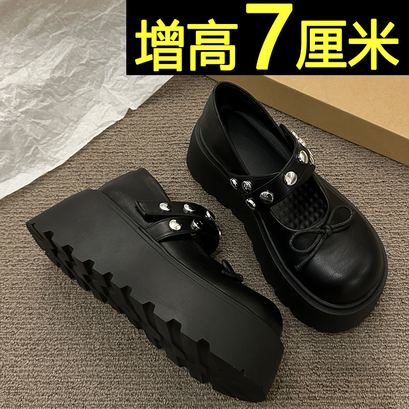 蝴蝶结浅口单鞋女2026新款春季小个子厚底增高百搭配裙子玛丽珍鞋