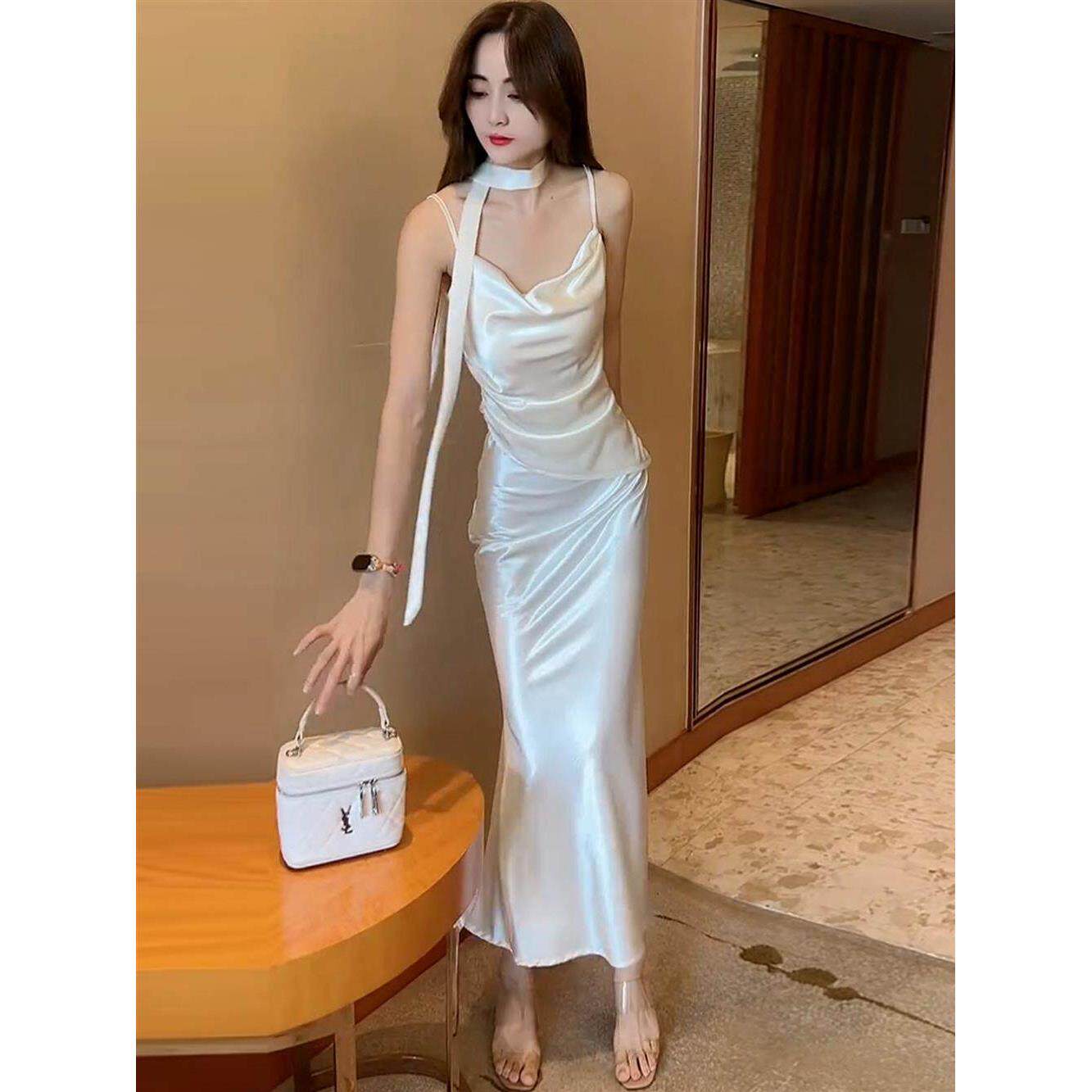 今年流行缎面吊带连衣裙女夏季2026新款高级感收腰显瘦气质长裙