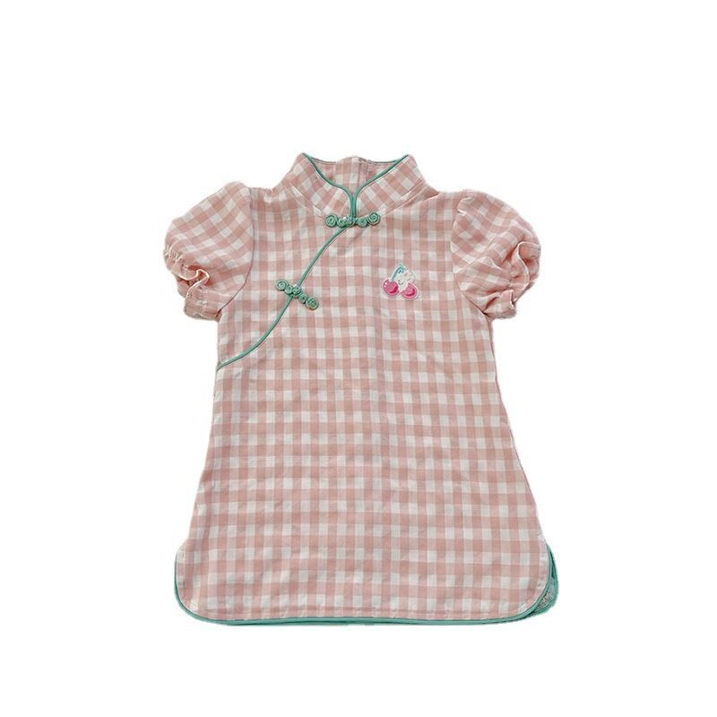 儿童小旗袍汉服2024年新款女童中国风格子连衣裙宝宝薄款夏季裙子