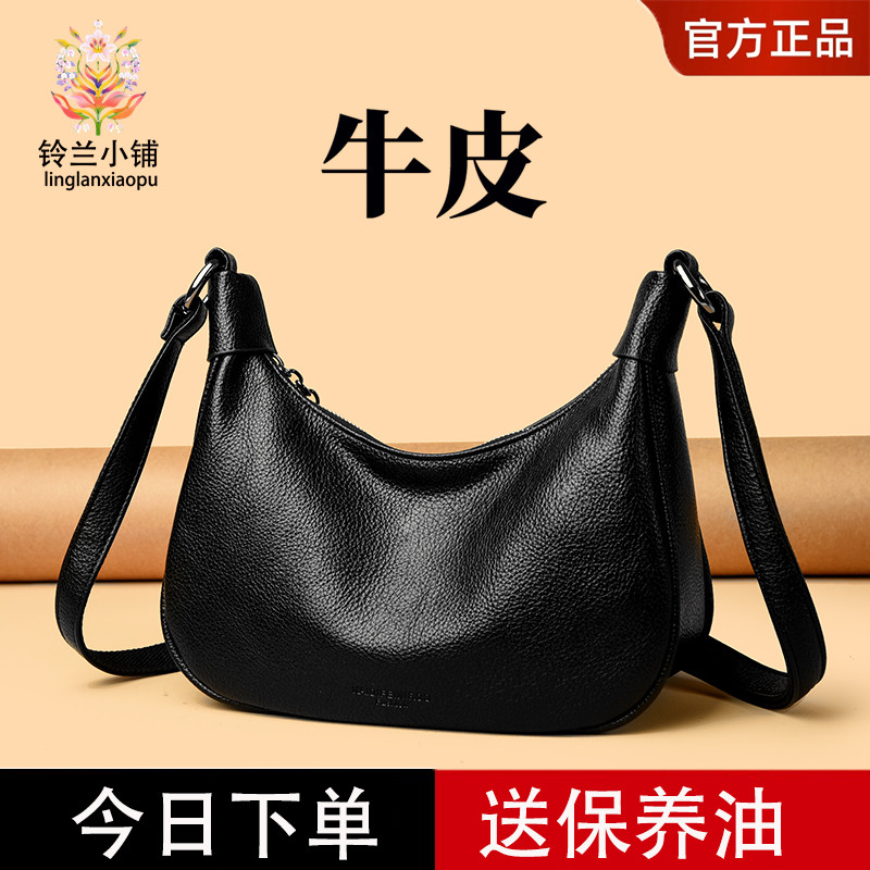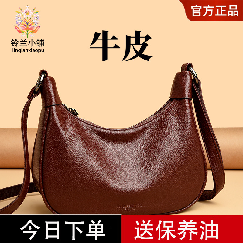 真皮斜挎包包女士2026新款牛皮高级感休闲单肩通勤时尚女包饺子包