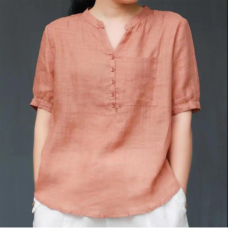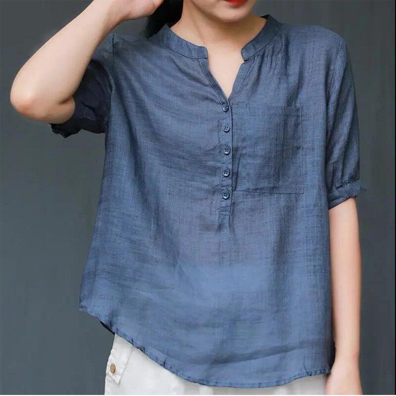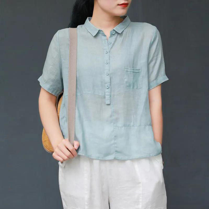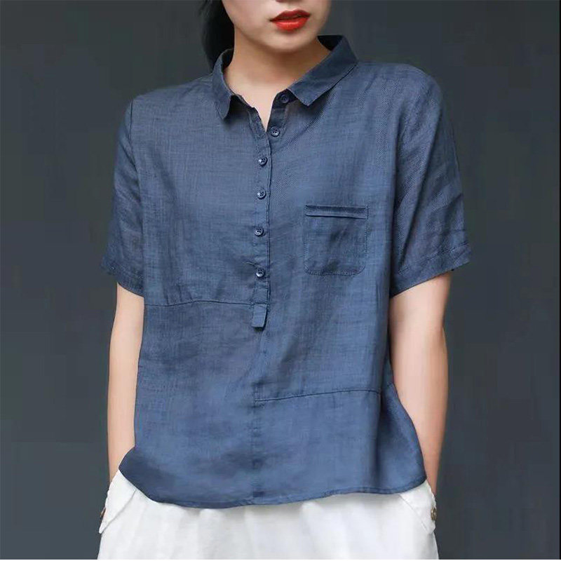 短袖棉麻女装夏季2026新款薄款宽松高端复古翻领衬衫套头亚麻上衣