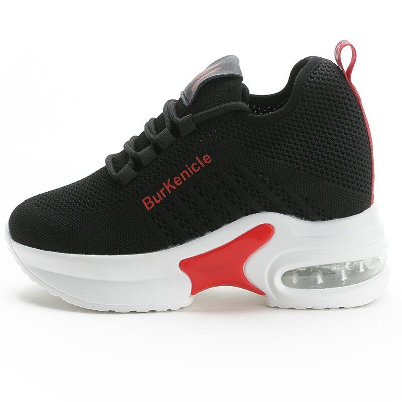 女士黑色运动鞋内增高厚底坡跟松糕跟休闲鞋旅游鞋女土春天的0112
