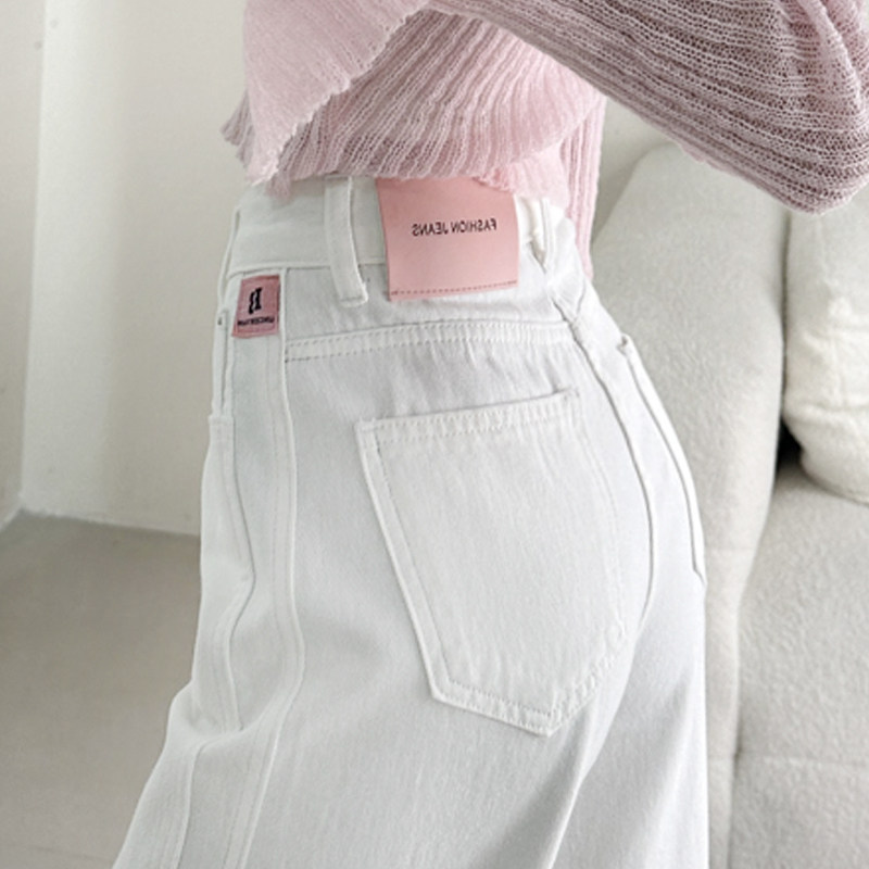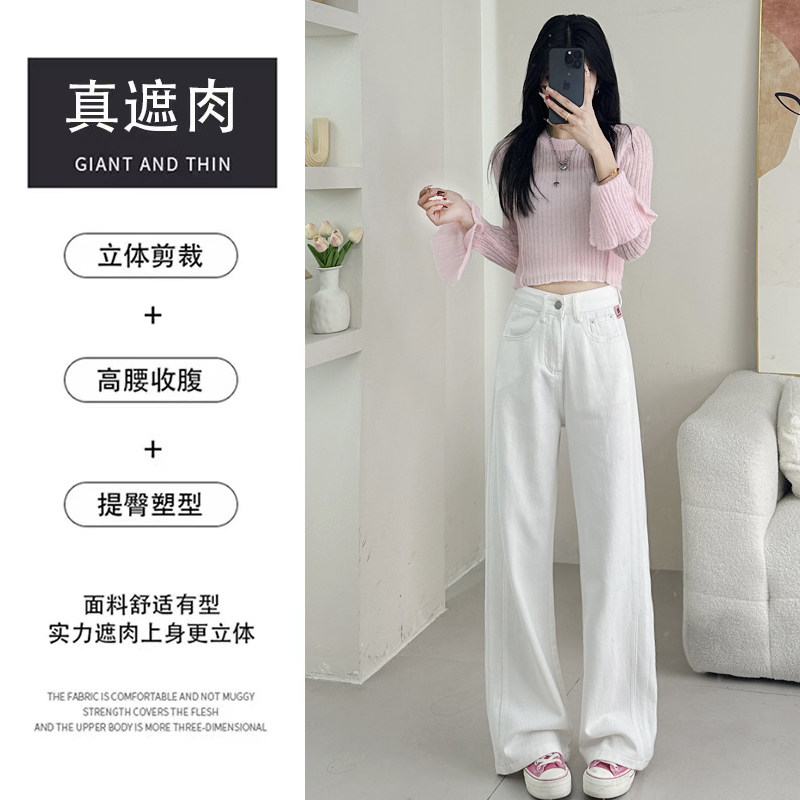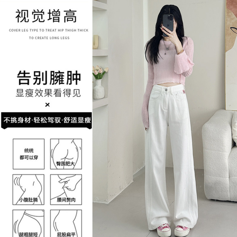白色窄版阔腿牛仔裤女春装2026春季新款高腰显瘦小个子直筒拖地裤