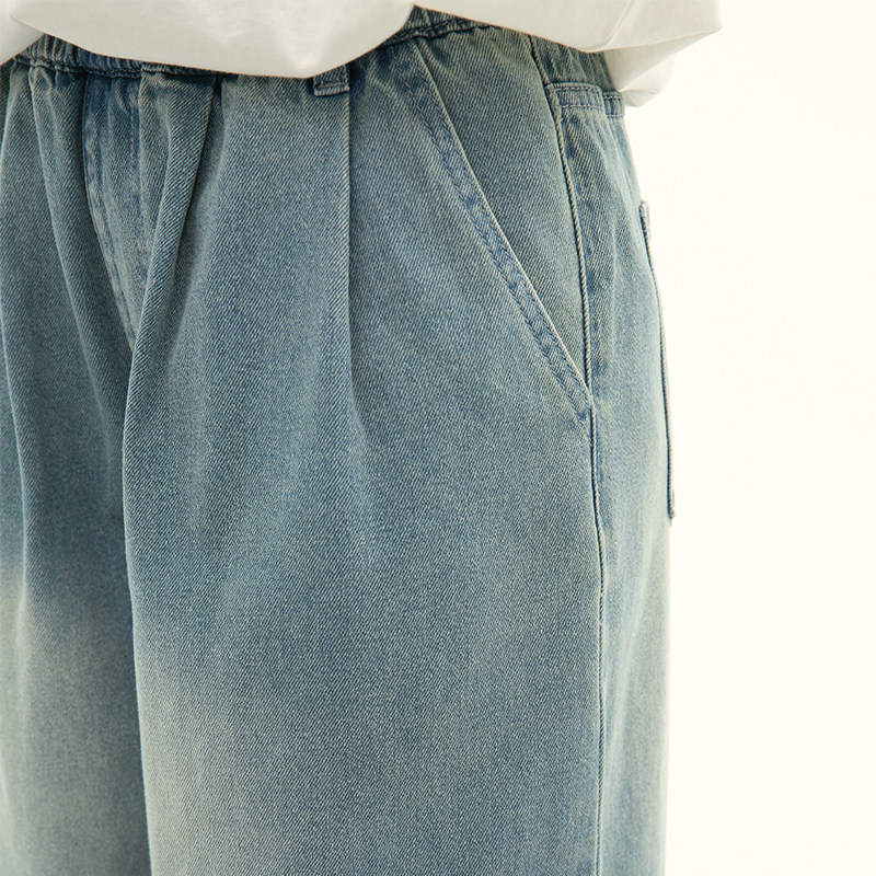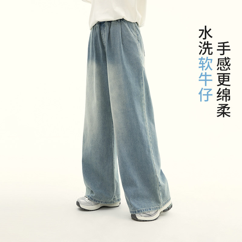 诺诺公主S1N 初中生复古牛仔裤女春水洗软牛仔元气学院风阔腿裤子