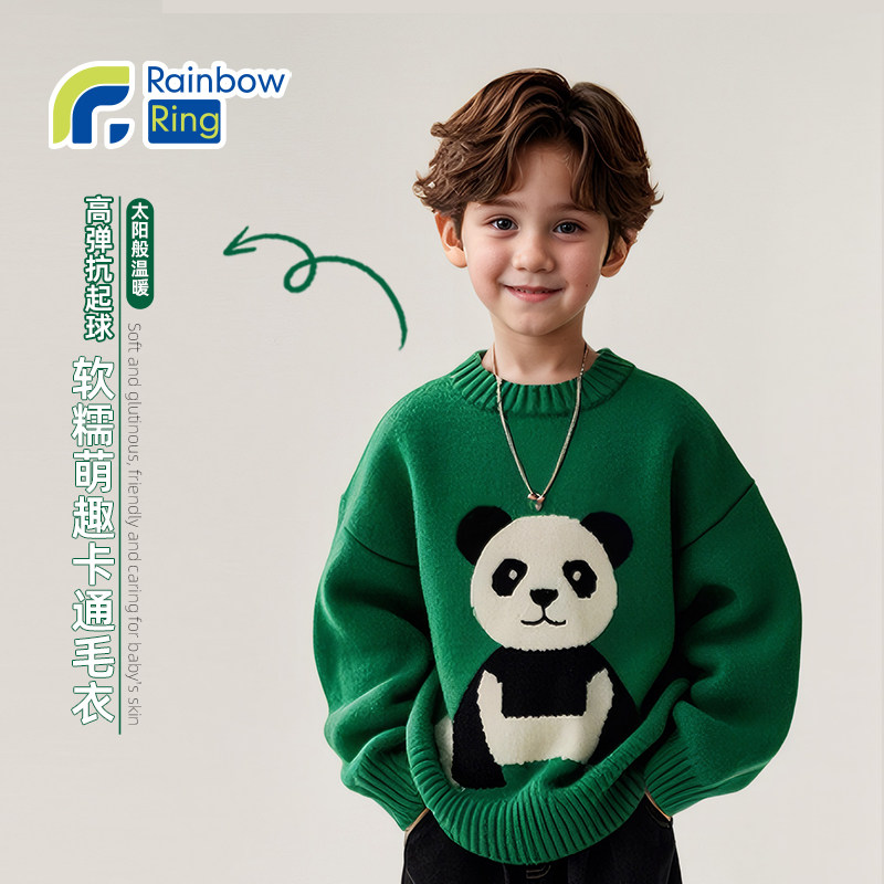 男童毛衣春秋冬季2026新款中大儿童男孩针织衫绿色加厚上衣冬装