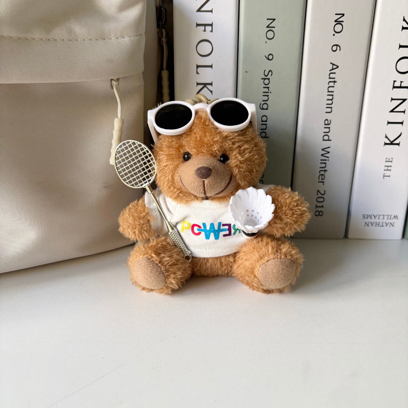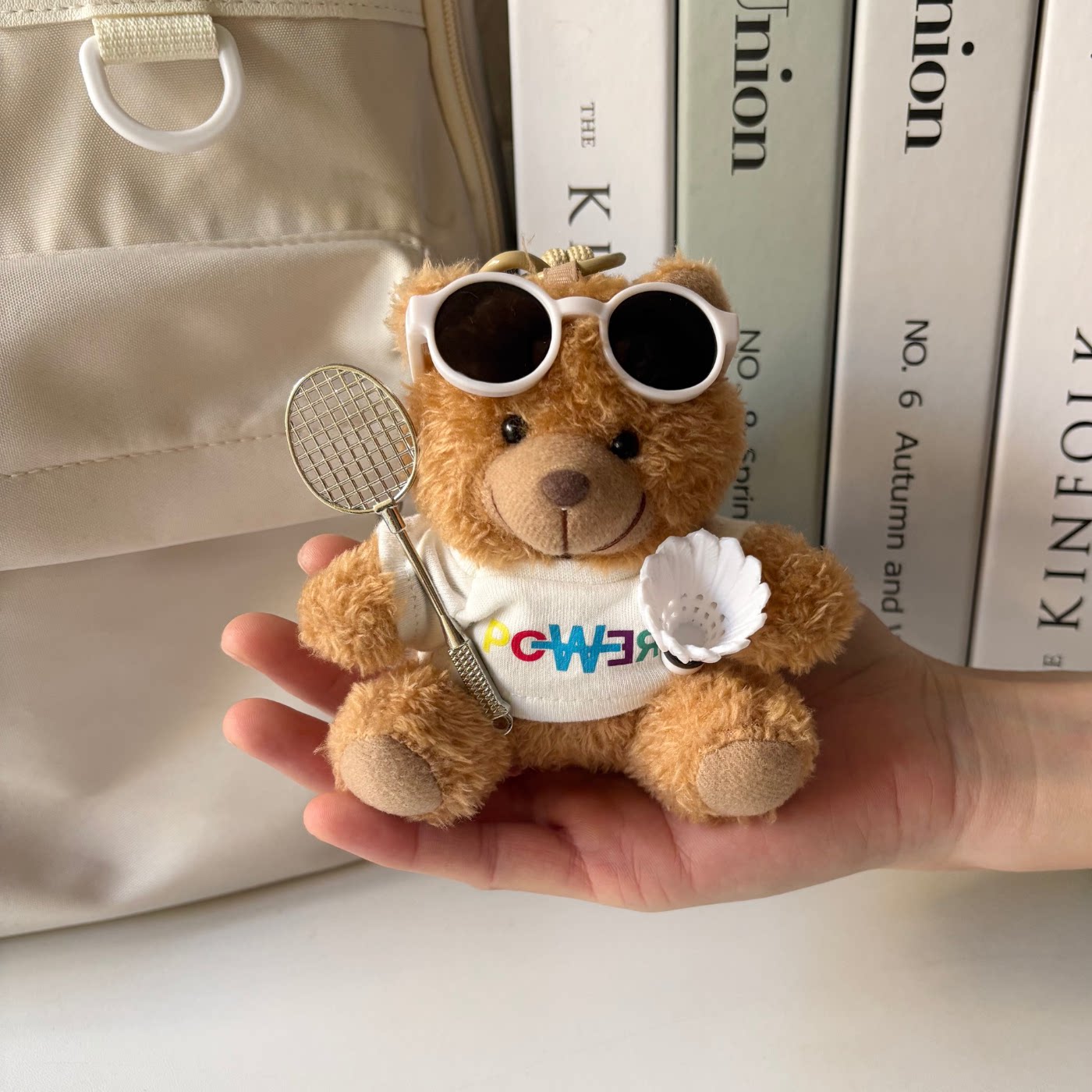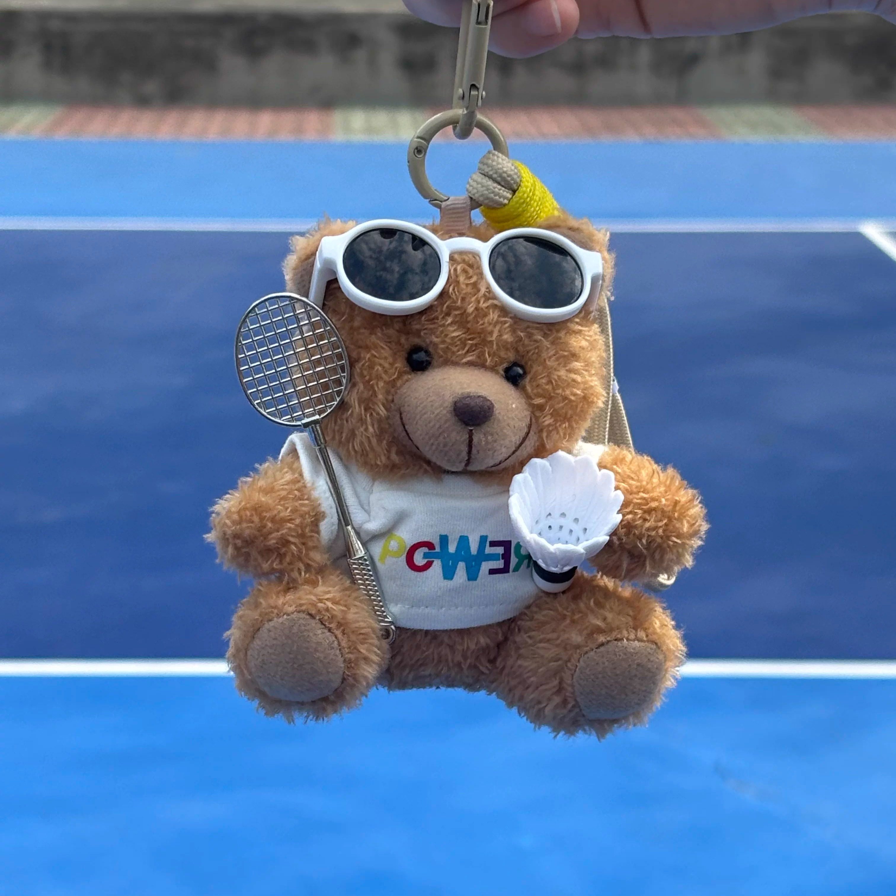泰迪熊羽毛球拍包挂件毛绒玩偶运动背包挂饰男女礼物潮玩包挂定制