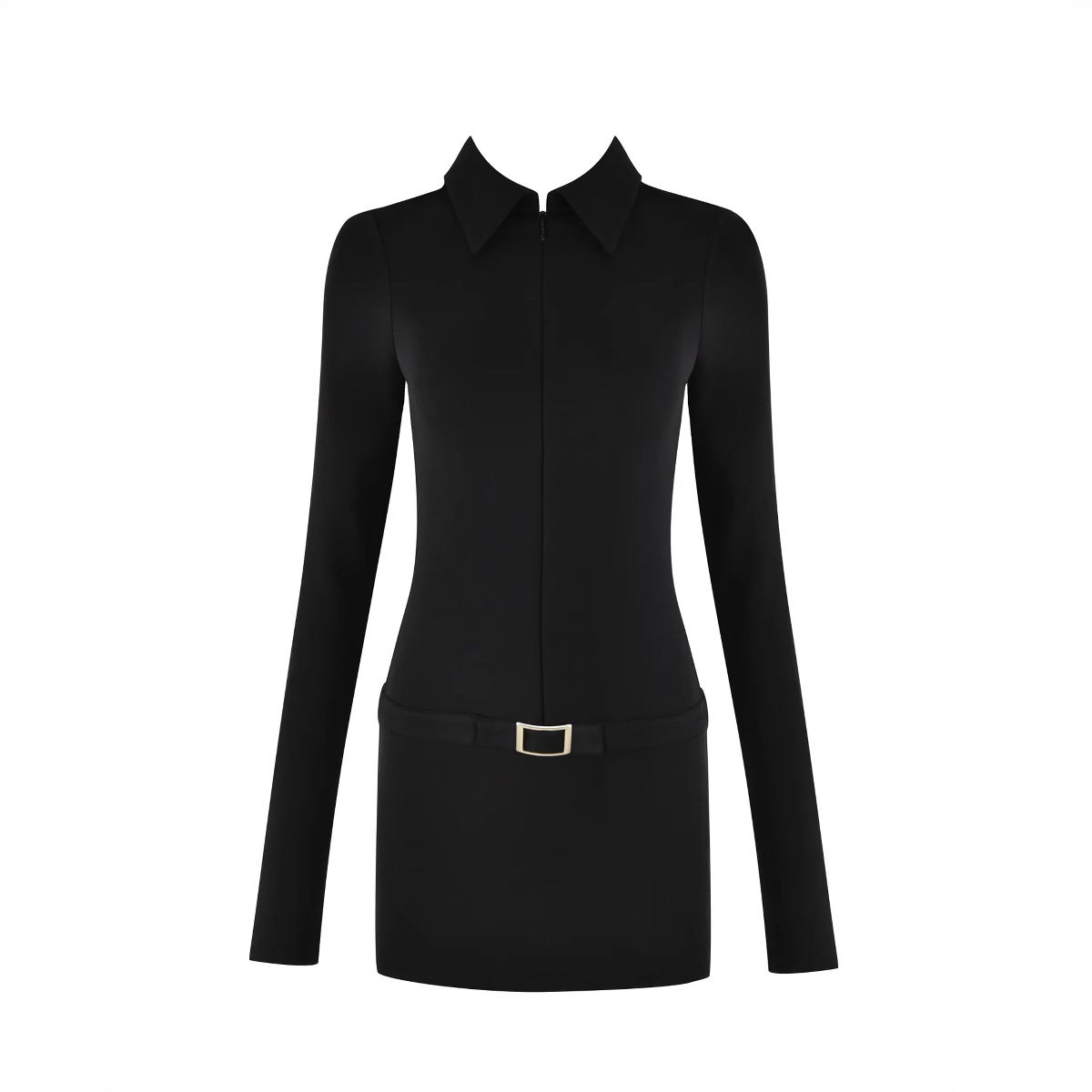 IAMUBABA现货iamgia欧美性感大深v长袖连衣裙紧身包臀短款一步裙